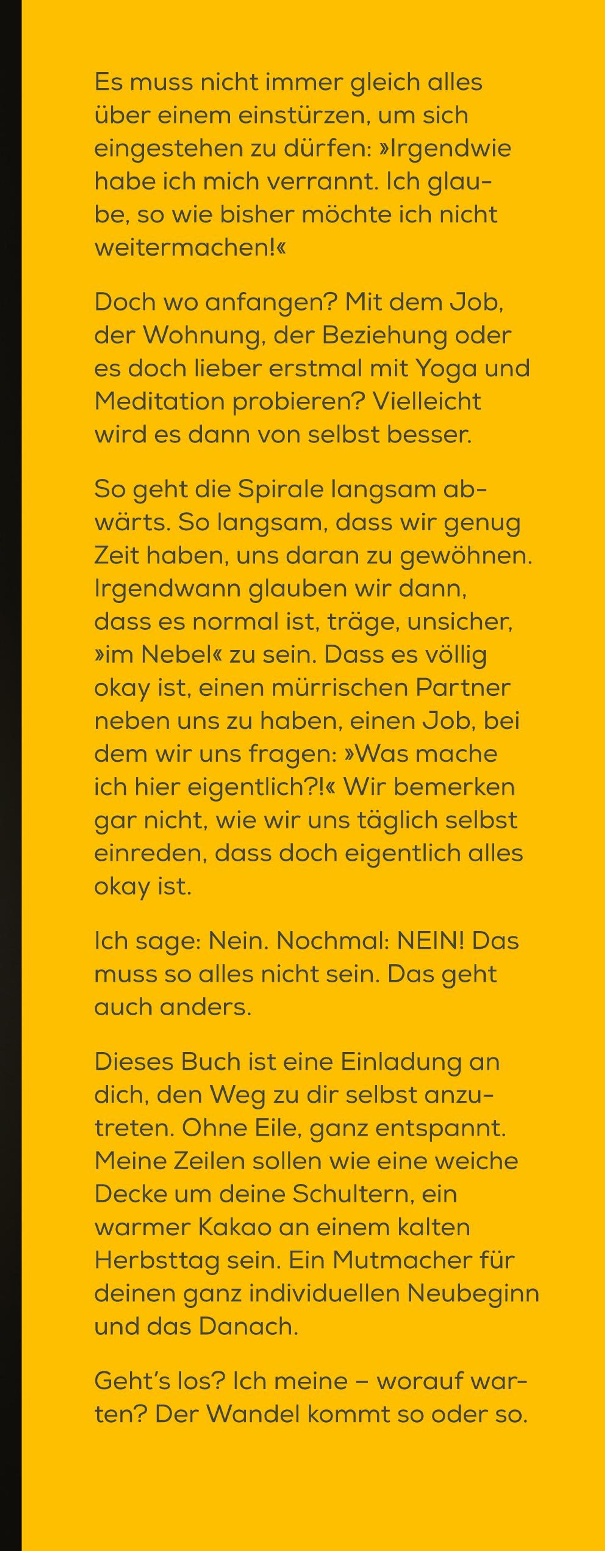 Das Leben ist eigen. Es mutet uns Schicksalsschläge zu. Es lässt Träume und Pläne wie Seifenblasen zerplatzen. Du gibst alles und bekommst - nichts. Ist das fair? Nein. Aber es passiert. Es zieht dir den Boden unter den Füßen weg, du stolperst. Aber nur weil du stolperst, fällst du nicht. Und selbst wenn du fällst, bist du noch lange nicht am Ende. Im Gegenteil. Genau jetzt ist der richtige Zeitpunkt, alles in deinem Leben auf Neubeginn zu stellen: deine Freundschaften, deine Beziehungen, deine Arbeit, deine eigenen Handlungen.