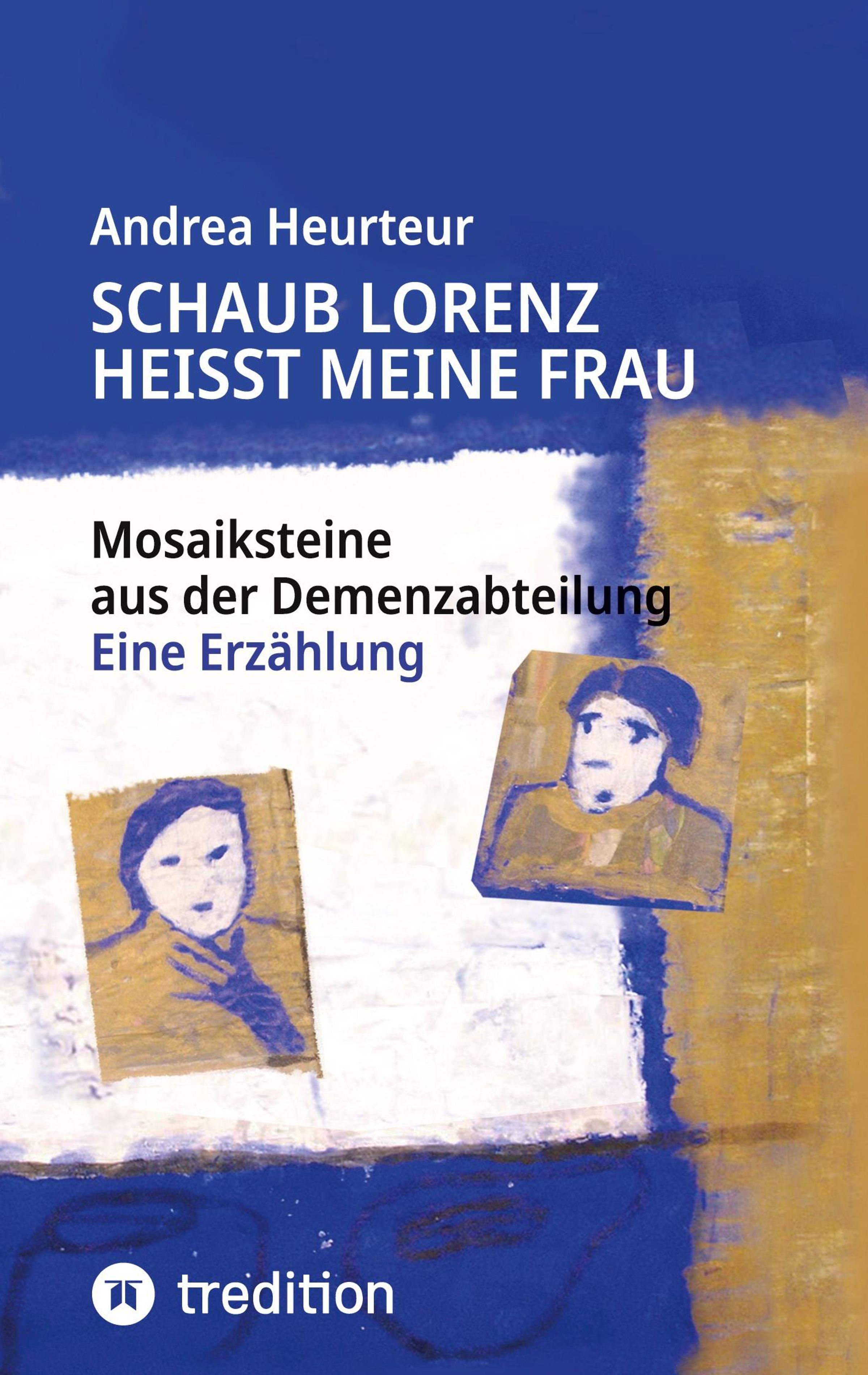 Titel: "Schaub Lorenz heißt meine Frau". Untertitel: "Mosaiksteine aus der Demenzabteilung – Eine Erzählung". Illustration mit Gesichtern., Buch