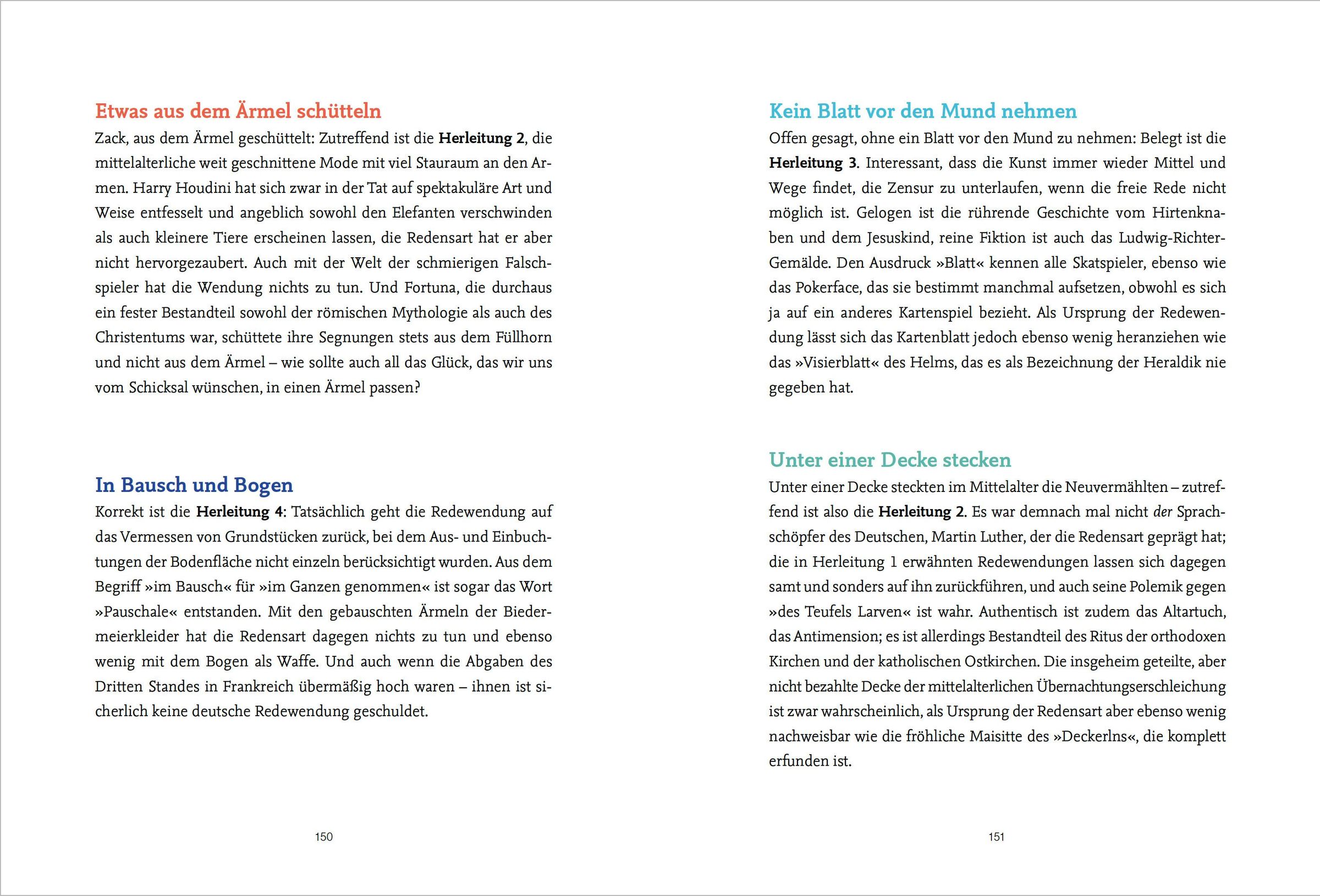 Wir beherrschen sie aus dem Effeff und niemand, der sie hört, wird sich auf den Schlips getreten fühlen oder außer Rand und Band geraten. Redensarten sind das Salz in der Suppe und treffen den Nagel auf den Kopf. Doch wie sind sie entstanden und welche Geschichten verbergen sich hinter diesen meist charmanten, teils auch etwas boshaften, immer aber prägnanten und bildhaften Wendungen? Woher stammt etwa das berühmte Fettnäpfchen, um das man besser einen großen Bogen macht? Kommt es aus der Welt des Theaters und wurde, befüllt mit Lampenöl, zur Beleuchtung am Bühnenrand aufgestellt? Geht es auf einen schwedischen Weihnachtsbrauch zurück? Benutzte man seinen Inhalt für die Schuhpflege? Oder kam es bei der Tanzstunde zum Einsatz und war - wenn man hineintrat - ein Ausdruck für unzureichende Schrittsicherheit und mangelndes Taktgefühl? Auch diesmal gilt es, aus vier möglichen Herleitungen die einzig wahre zu erraten - also geraten Sie nicht auf den Holzweg und freuen Sie sich wie ein Schneekönig, wenn Sie richtig liegen!