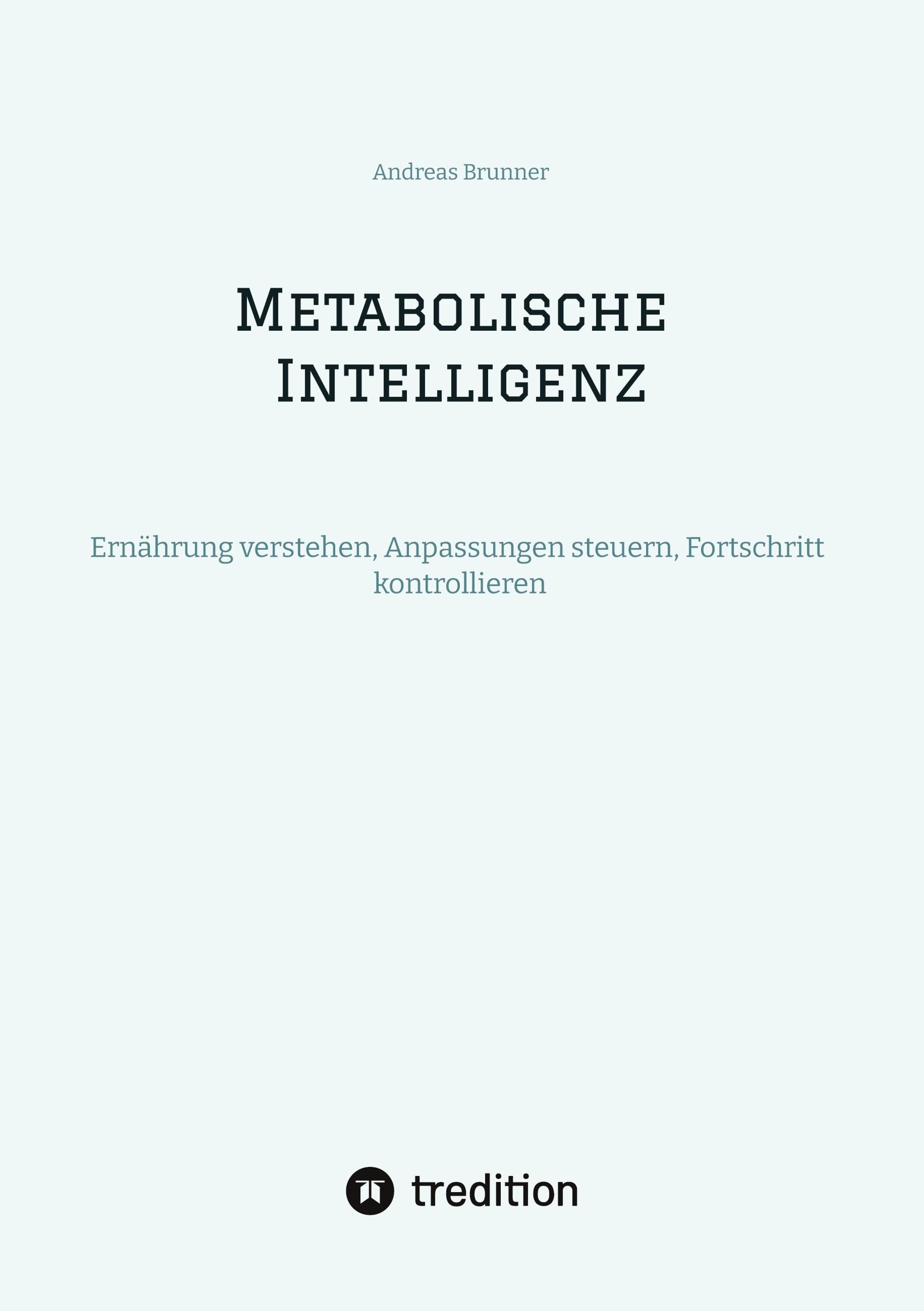Oben steht "Andreas Brunner", gefolgt von "Metabolische Intelligenz". Unten: "Ernährung verstehen, Anpassungen steuern, Fortschritt kontrollieren." Darunter ein Logo von tredition., Buch