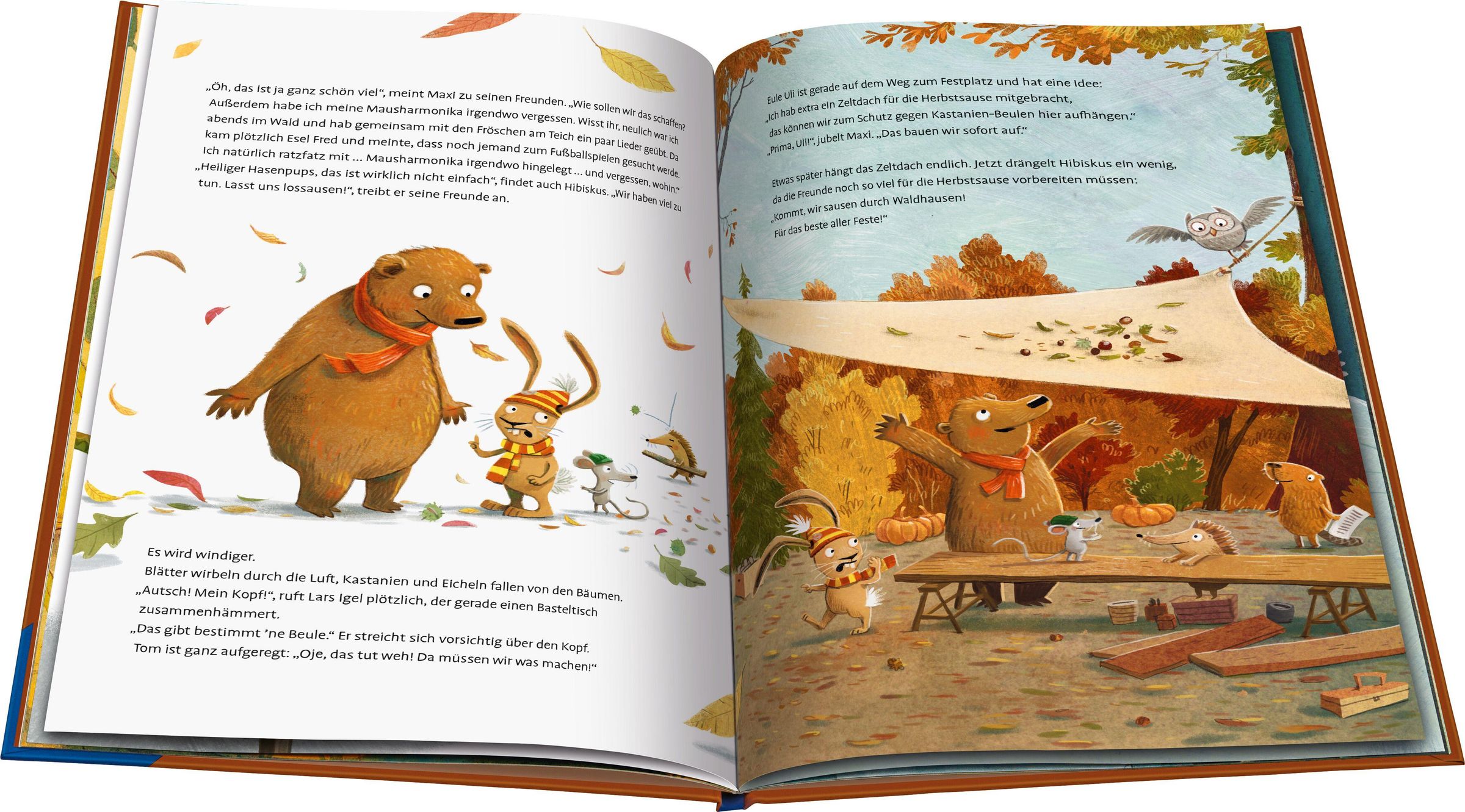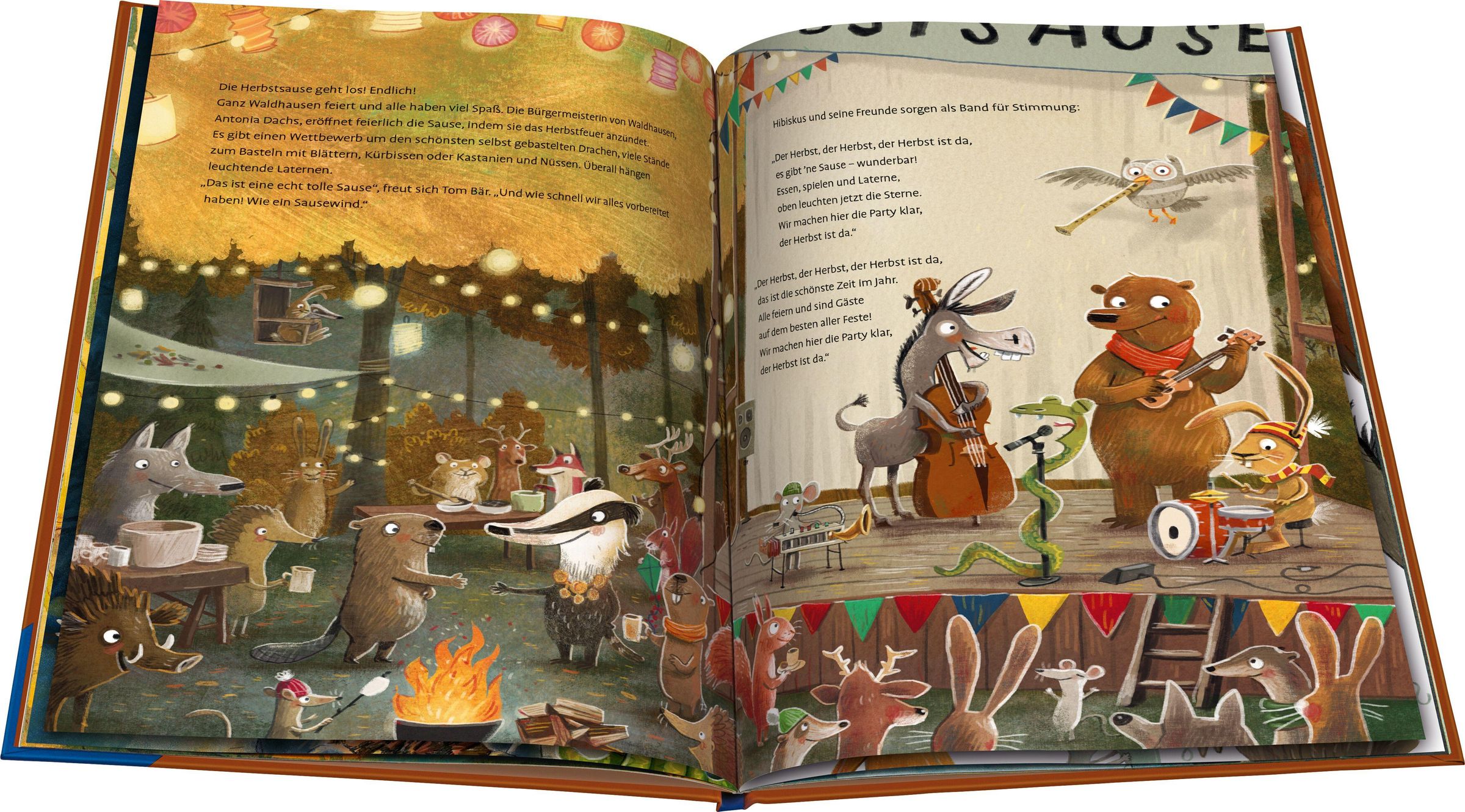 Hase Hibiskus und seine Freunde freuen sich auf die große Herbstsause. Denn da gibt es einen Laternenumzug, ein Lagerfeuer und das beste Essen! Doch bis zum Fest gibt es noch jede Menge zu tun - und viele kleine Abenteuer zu bestehen. Ob verlorene Mausharmonika, ein umgestürzter Baum oder ein Freund in Not: Gemeinsam meistern sie jedes Hindernis mit Herz, Humor und Musik. Ein fröhliches Bilderbuchabenteuer voller Freundschaft, Spaß und Herbstzauber!