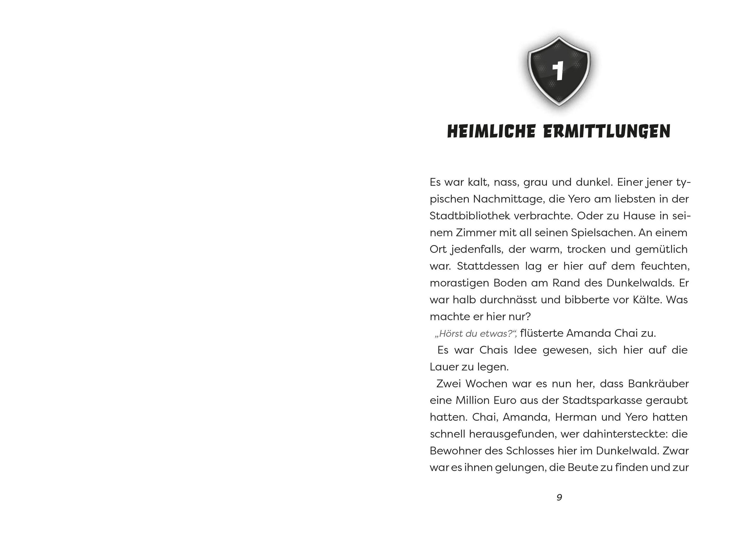 Yero kann es nicht fassen: Nur knapp konnten er und seine Freunde Herman, Chai und Amanda den gefährlichen Wolfsdrachen entkommen, und nun sollen sie schon wieder zurück in den Dunkelwald. Ihre Mission: Herausfinden, wer hinter dem Bankraub von neulich steckt. Nur gemeinsam können sie das Geheimnis lüften und die Identität des Blitz-Kindes aufdecken. Doch was macht der mysteriöse Junge plötzlich in der Klasse der vier?