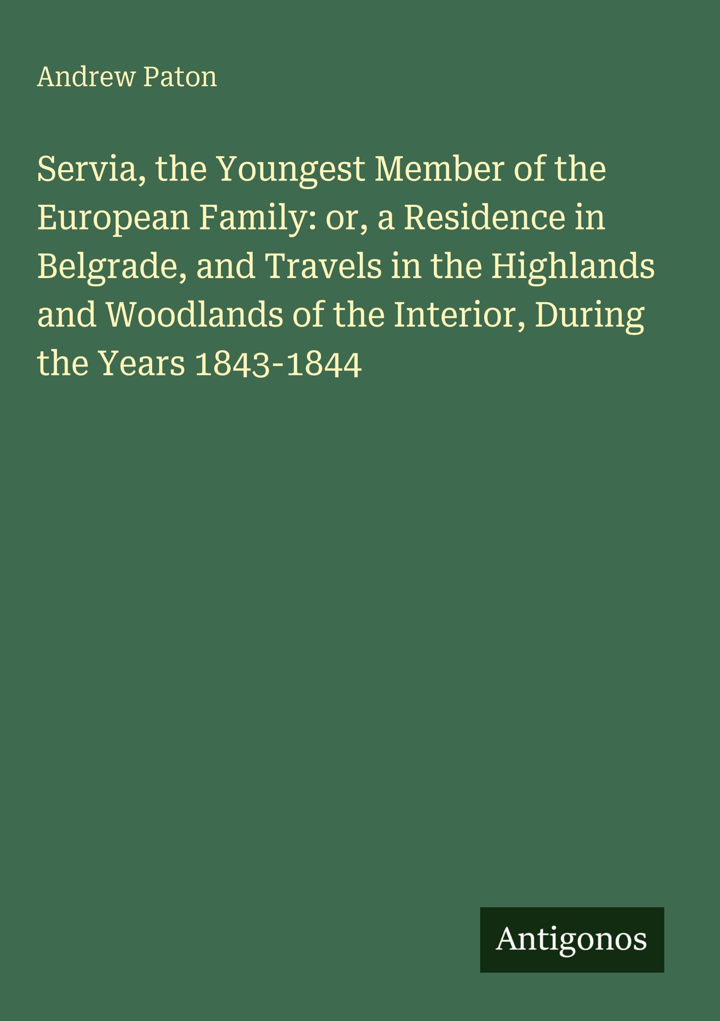 Andrew Paton: Servia, the Youngest Member of the European Family: or, a Residence in Belgrade, and Travels in..., Gebunden