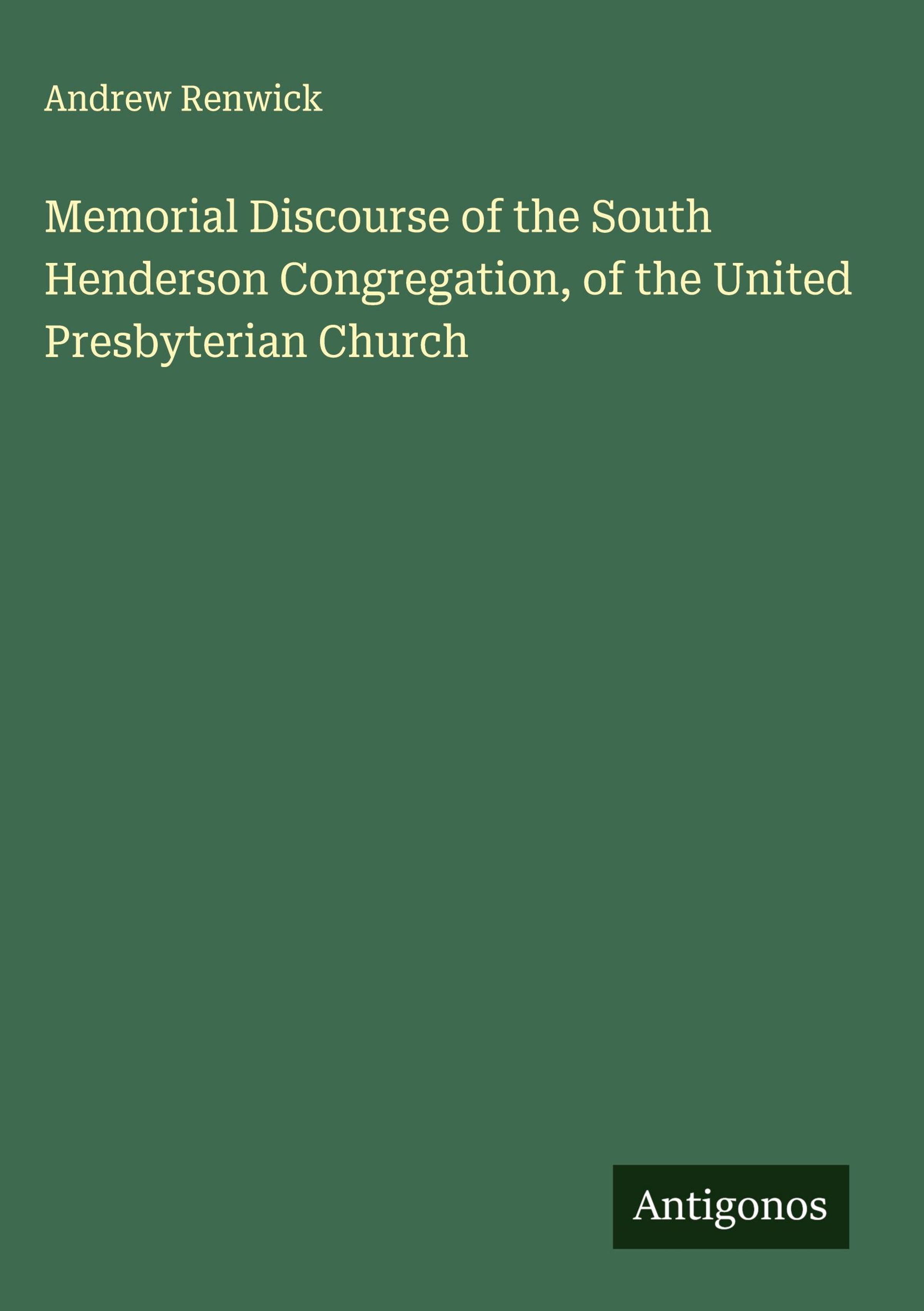 Andrew Renwick: Memorial Discourse of the South Henderson Congregation, of the United Presbyterian Church, Gebunden