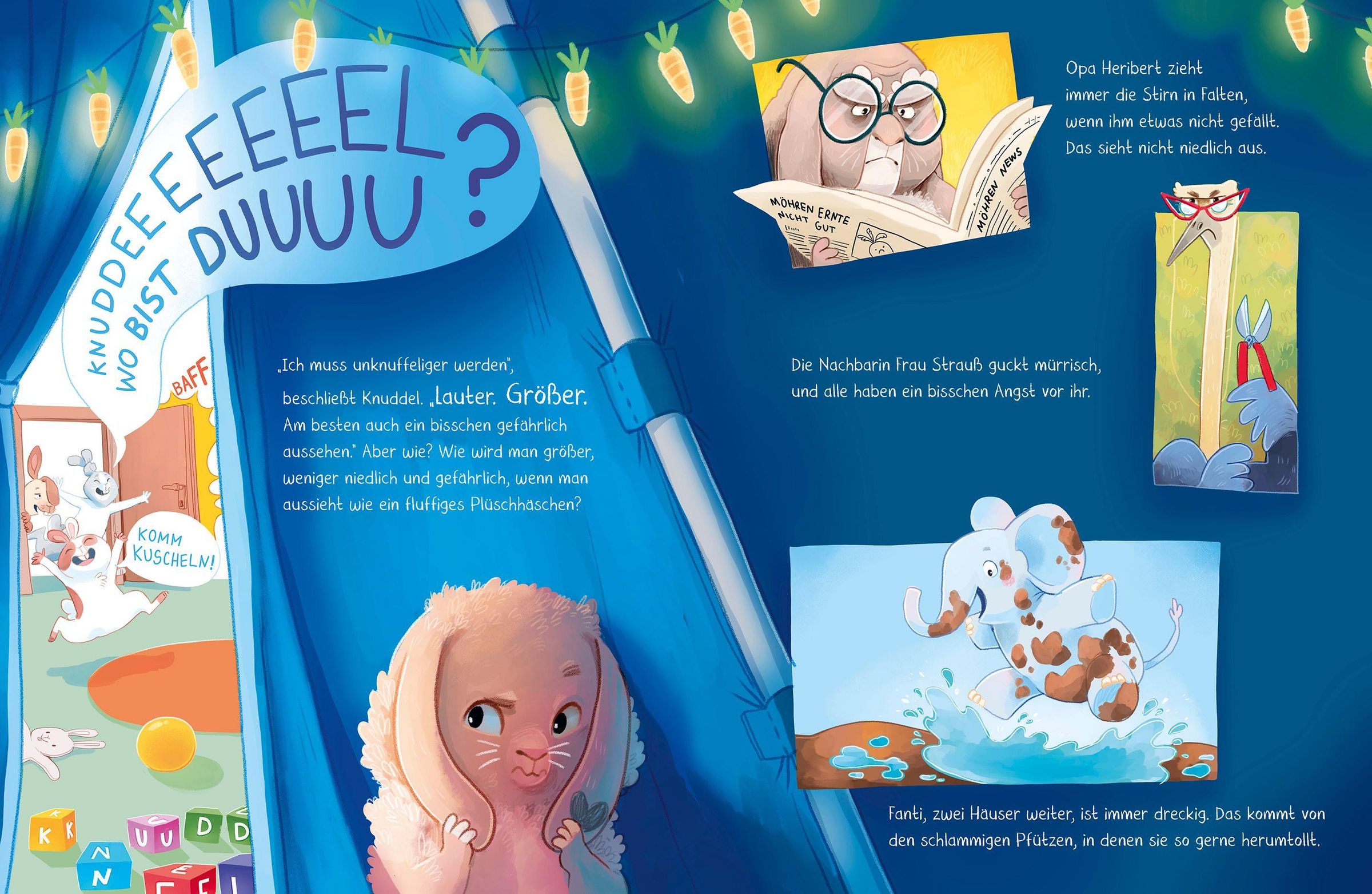 Stell dir das süßeste, knuffigste, kuschligste Häschen aller Zeiten vor. Hast du's vor Augen? Ist es auch flauschig genug? Gut. Das ist Knuddel. Knuddel ist so goldig, dass man ihn einfach liebhaben muss. Aber - Knuddel kann das gar nicht leiden! Blöd, dass man sein zartes Stimmchen kaum hören kann, wenn es wieder mal umarmt wird. Was macht man da nur? Knuddel hat ein paar Ideen ...