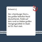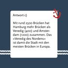Was ist ein Franzbrötchen? Welche Brücke führt über die Elbe? Wer sang von der Reeperbahn nachts um halb eins? Dieses Quiz vereint Wissen und Anekdoten -- mal wissenswert, mal amüsant, aber immer mit dem typischen Hamburger Charme. Ideal für Spielrunden zu Hause, für unterwegs oder als originelles Geschenk mit Lokalkolorit.