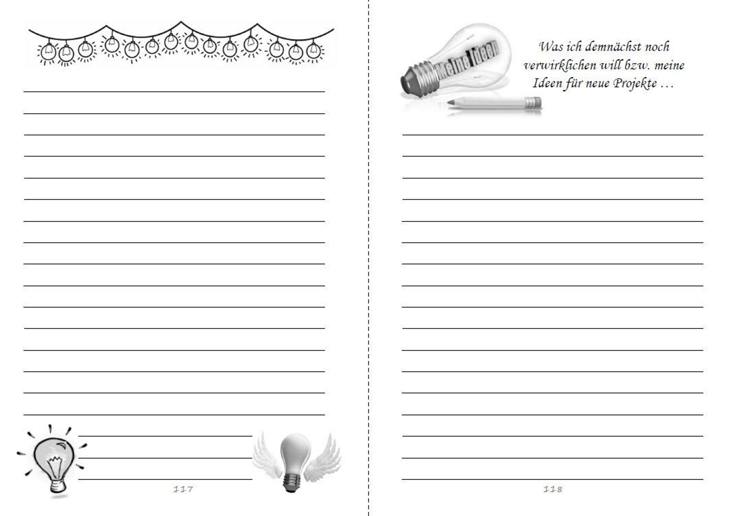 ** Zum Ende des Notizbuches gibt es noch ein paar Seiten mit Platz zum Notieren deiner neuen Ideen und Projekte, sowie weitere Notizen oder Skizzen von dir.