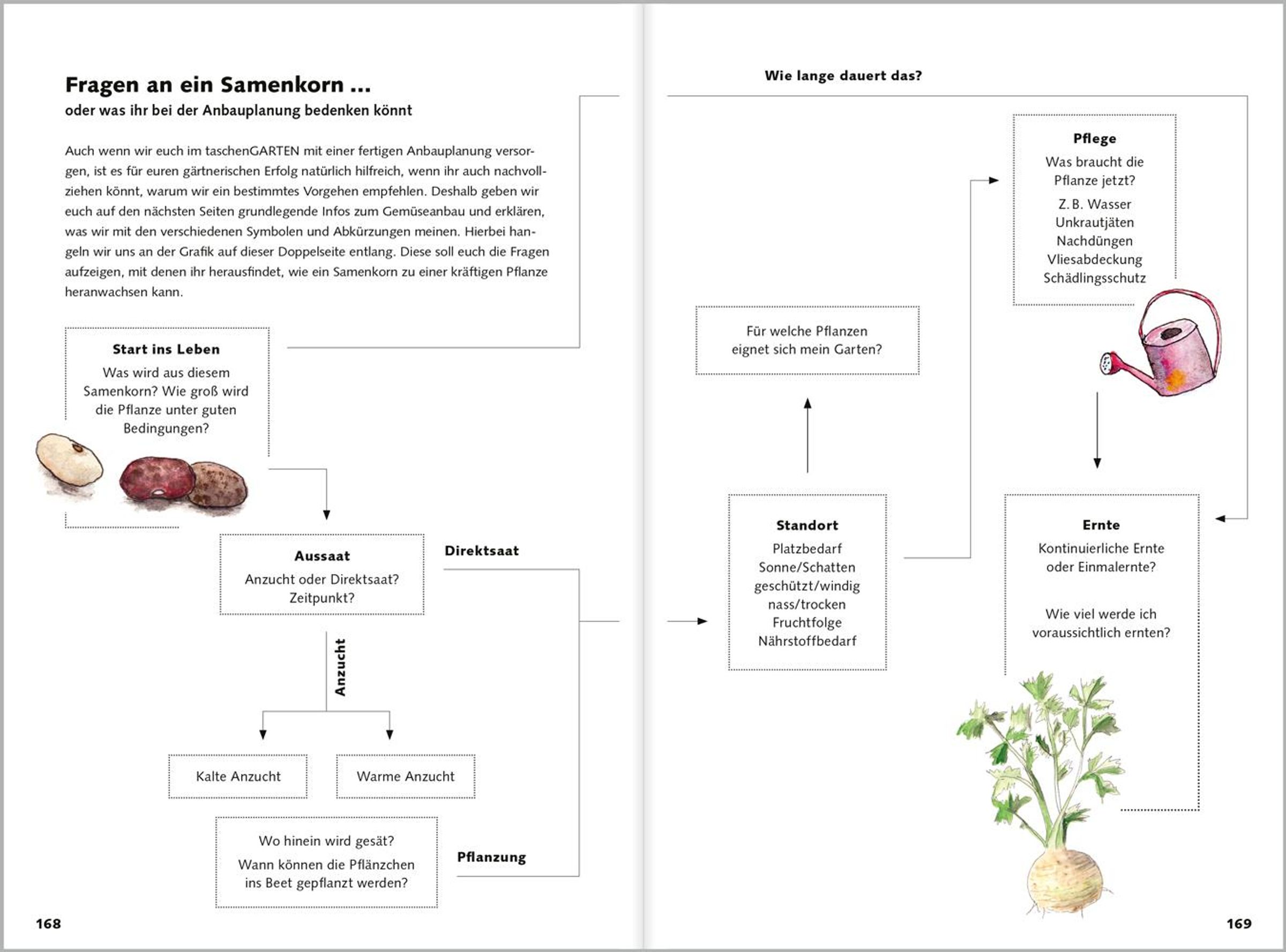 Der taschenGARTEN ist ein persönlicher Terminkalender und Gartenplaner. Ein detaillierter wöchentlicher Aussaat- und Pflanzplan sowie viel Praxiswissen zum Anbau von Gemüse und Kräutern machen ihn zum idealen Begleiter im Haus- und Nutzgarten. Auch informiert er zu Themen wie Klimagerechtigkeit und Biodiversität, denn Gärtnern ist politisch! 2026 zeigt der taschenGARTEN, wie wir unsere Gärten sowohl gegen Wasserknappheit als auch Starkregen wappnen können. Dabei helfen zu Standort und Boden passende Pflanzen, Mulch sowie eine kluge Gartenbewässerung. Auch Schatten spendende Bäume, Sickermulden oder Teiche speichern das Wasser für trockene Zeiten und zaubern üppige Gärten in Zeiten des Klimawandels.