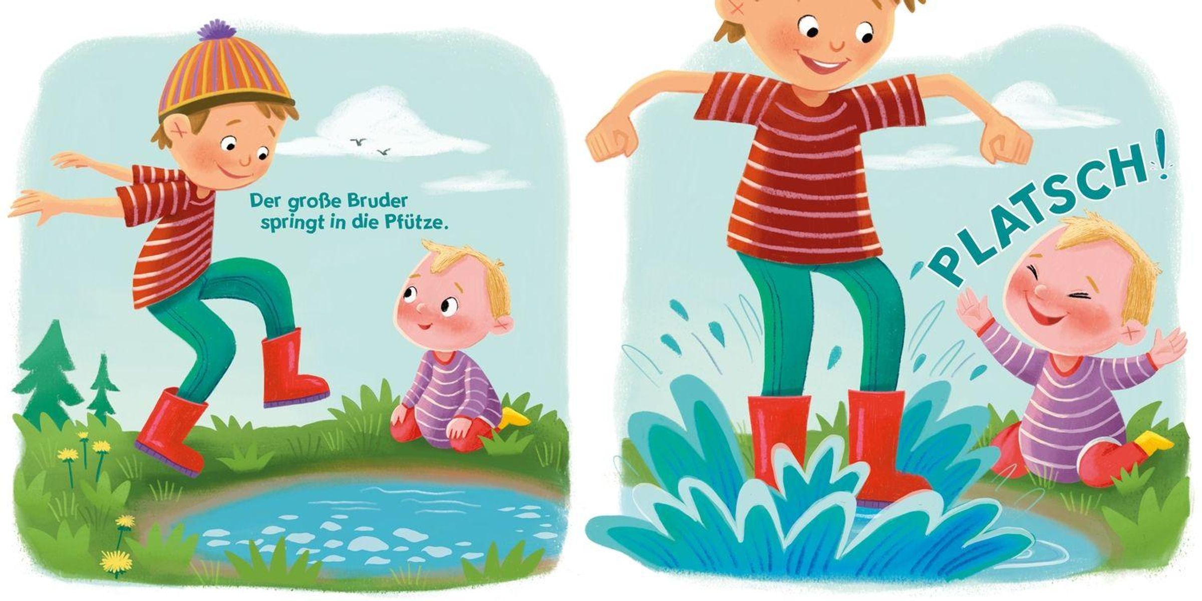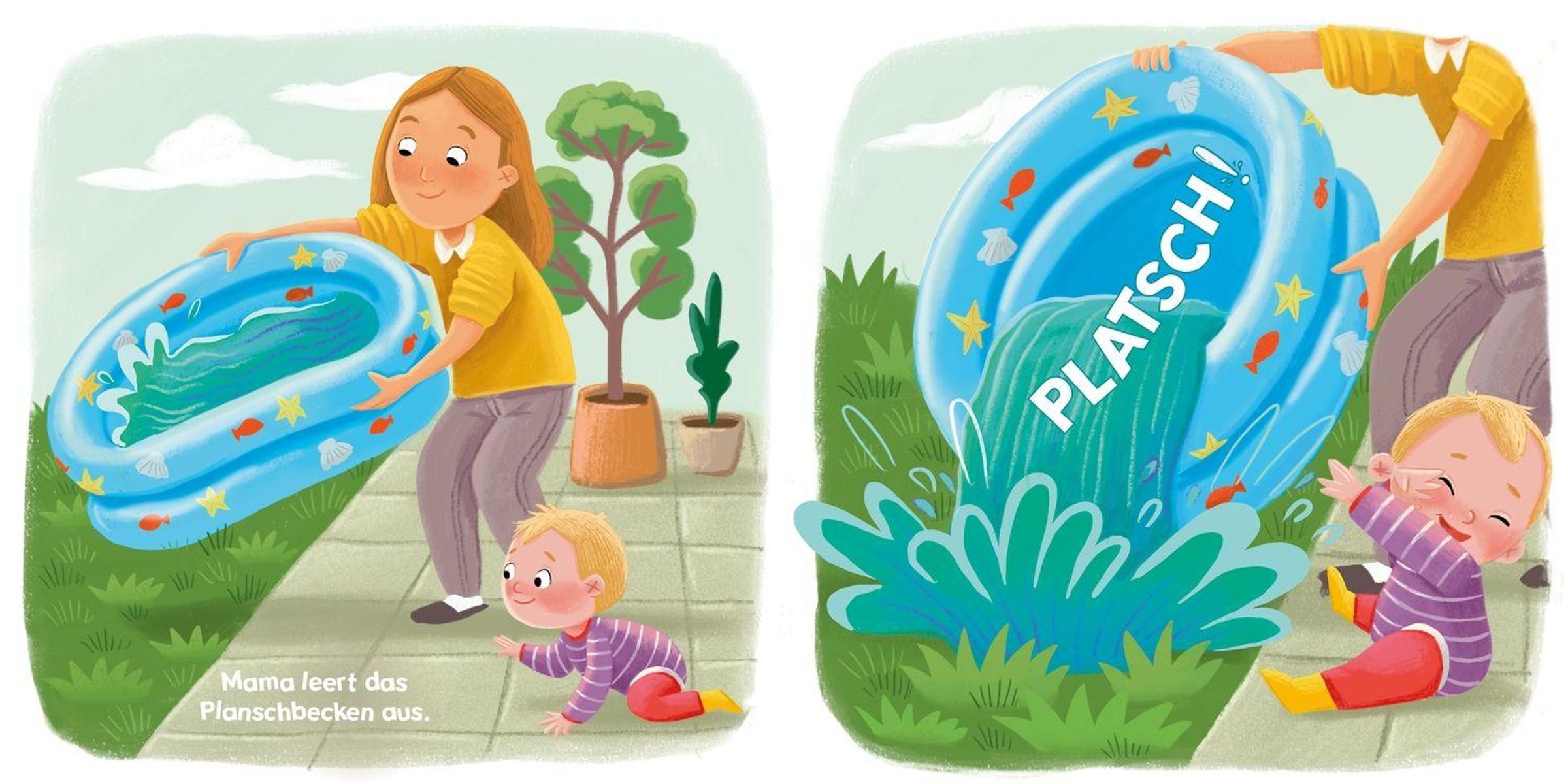 Spritz, pitsch, patsch - alles nass! Ob im Planschbecken, mit der Gießkanne oder in den großen Pfützen im Garten. Schon Babys haben Humor, und dieses fröhliche Pappbilderbuch bringt die Allerkleinsten zum Juchzen. Seite für Seite sorgt das wiederkehrende Geräusch für Kichern und Staunen. Ein liebevoller Mitlach-Anstoß für Babys und herzerwärmend für alle, die zusehen dürfen, wie die Kleinsten ihren ersten Lieblingswitz entdecken.