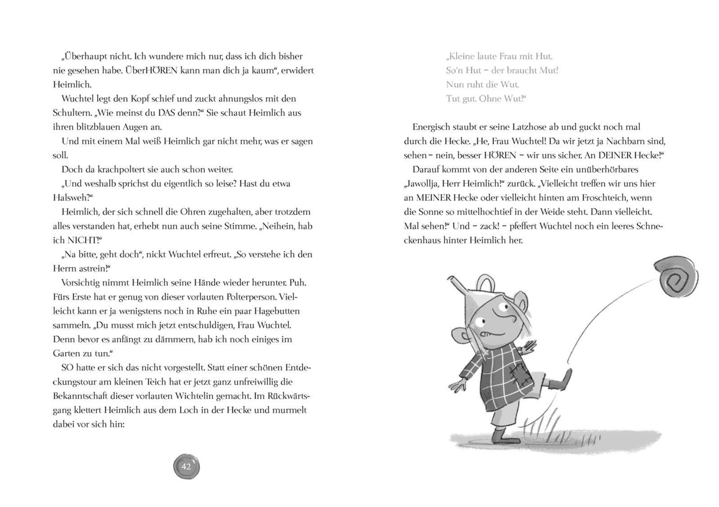 Heimlich ist ein echter Hauswichtel. Nur, wer braucht noch Hauswichtel, wo nichts mehr repariert, sondern alles gleich weggeworfen wird? Niemand! Doch dann trifft Heimlich auf Lotte und die braucht seine Hilfe. Denn in Lottes Familie ist ständig was los: Papas Socken verschwinden, das Küchenradio will nicht mehr, Lottes Friseurtermin läuft anders als geplant und in Mamas Geburtstagskuchen klafft ein riesiges Loch. Im Grunde das ganz normale Familienchaos! Aber zum Glück hat Lotte jetzt ja Heimlich. Und der weiß, was hier zu tun ist. Denn es wäre doch gelacht, wenn ein Hauswichtel wie er hier nicht helfen könnte!