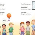 - Extrakurze Sätze in Sinnschritten mit begleitenden Illustrationen