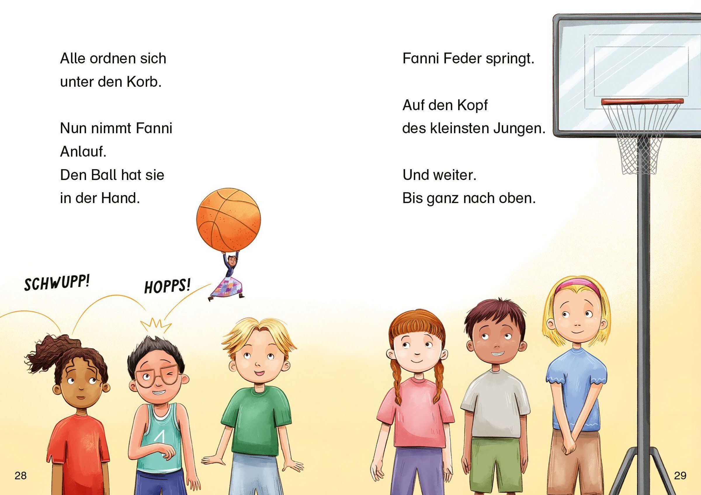 Fanni Feder ist zwar klitzeklein, aber dafür bärenstark - und immer bereit, wenn sie gebraucht wird! Als sie eine Klassenlehrerin in der Menschenwelt vertreten soll, zögert sie nicht lang. Größe spielt schließlich keine Rolle! Die Kinder verbringen mit ihr einen überaus lustigen Tag und schnell wird klar: Fanni ist die Größte!