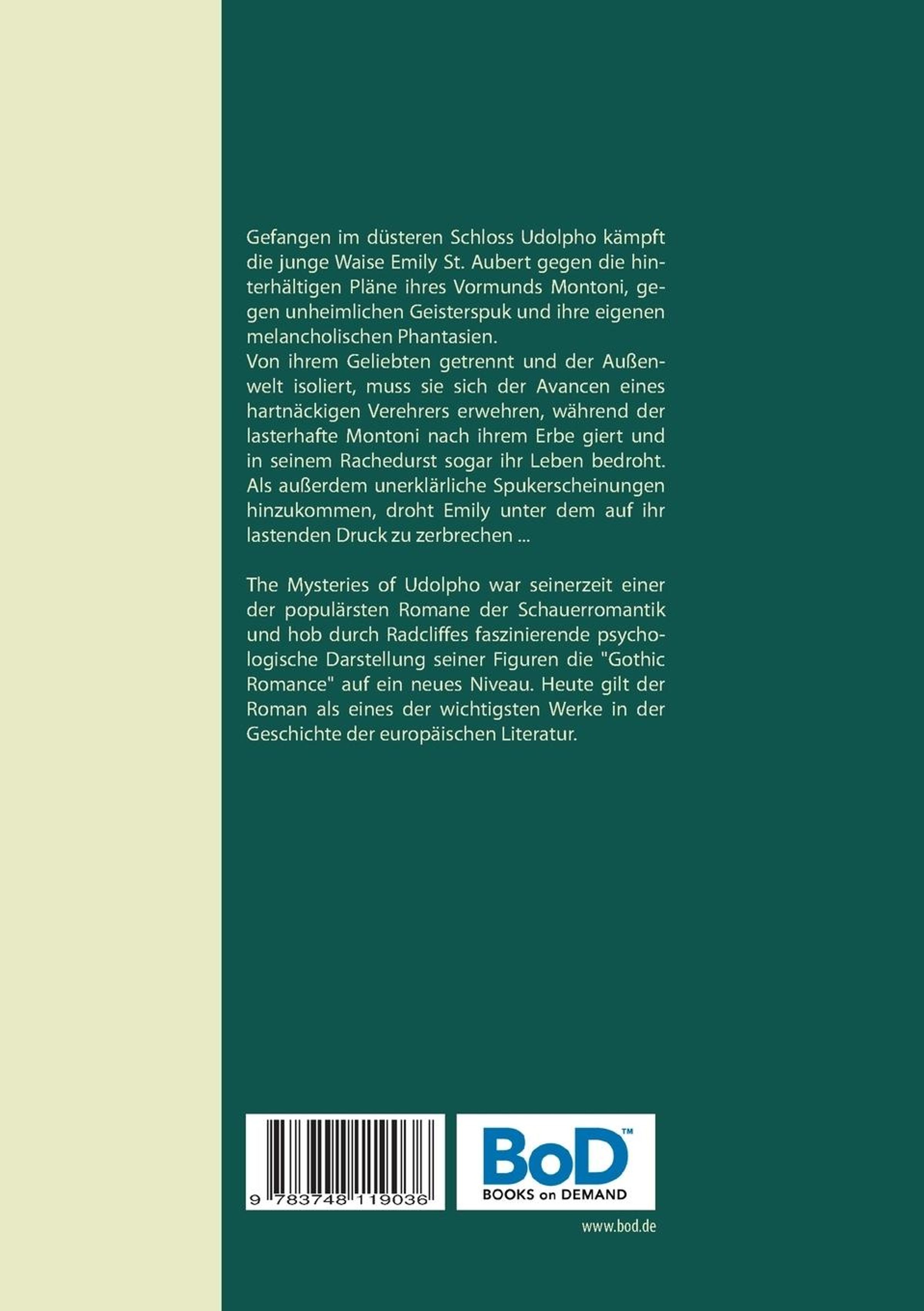 The Mysteries of Udolpho war seinerzeit einer der populärsten Romane der Schauerromantik und hob durch Radcliffes faszinierende psychologische Darstellung seiner Figuren die "Gothic Romance" auf ein neues Niveau. Heute gilt der Roman als eines der wichtigsten Werke in der Geschichte der europäischen Literatur.
