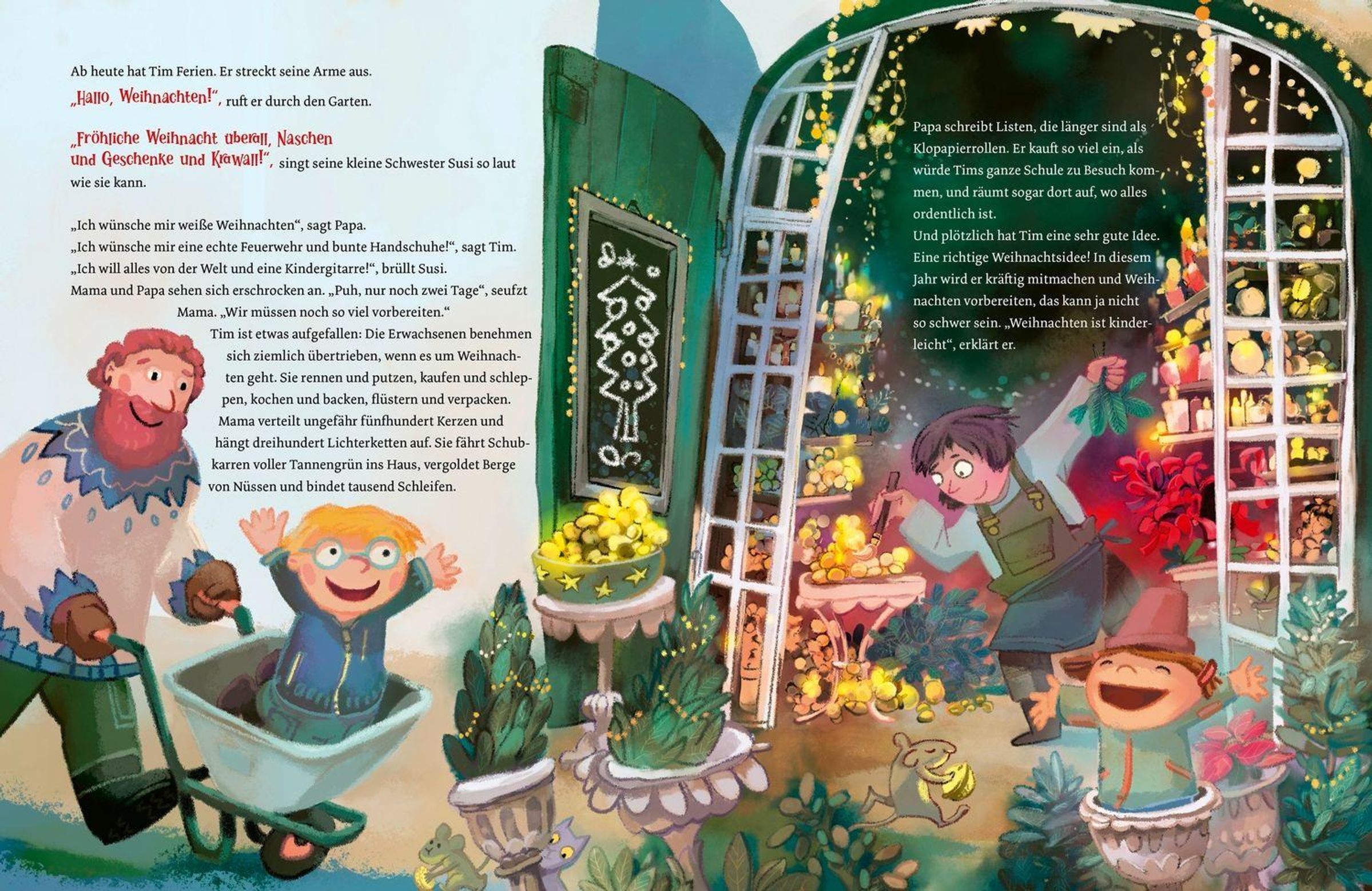 In der Gärtnerei-Familie von Tim soll Weihnachten besonders schön werden - mit Deko, Festessen, Geschenken und Gemütlichkeit. Doch eine Panne jagt die nächste: Mehlstaub-Explosion, abgebrochener Zahn, verschwundene Lebkuchen, angeknabberte Gans, ein gestürzter Weihnachtsbaum ... Die Nerven liegen blank. Doch am Ende merken alle: Dieses Weihnachten ist ganz und gar perfekt unperfekt, weil es unser Weihnachten ist.