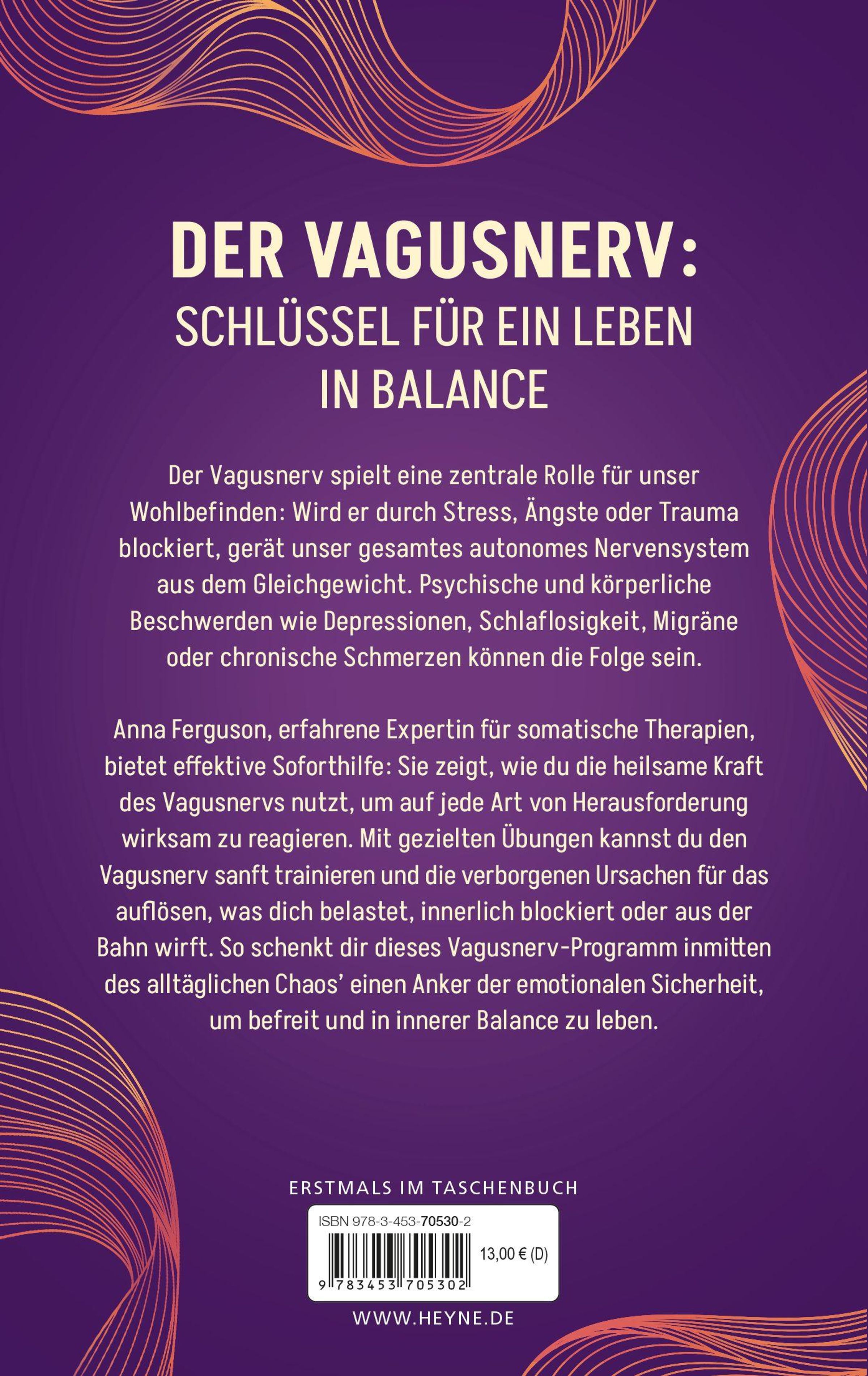 Anna Ferguson, erfahrene Expertin für somatische Therapien, bietet effektive Soforthilfe : Sie zeigt, wie wir die heilsame Kraft des Vagusnervs nutzen können, um auf jede Art von Herausforderung wirksam zu reagieren. Mit gezielten Übungen wird es möglich, den Vagusnerv sanft zu trainieren und die verborgenen Ursachen für das aufzulösen, was uns belastet, innerlich blockiert, ängstigt oder aus der Bahn wirft. So wird dieses Praxisprogramm inmitten des alltäglichen Chaos' zu einem Anker der emotionalen Sicherheit, um befreit und in innerer Balance zu leben .