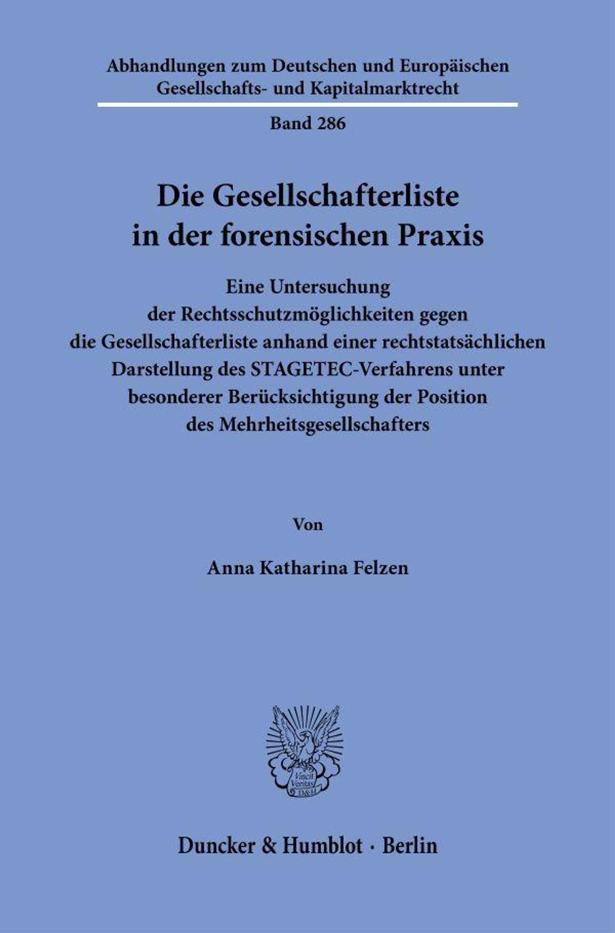 Anna Katharina Felzen: Die Gesellschafterliste in der forensischen Praxis, Gebunden