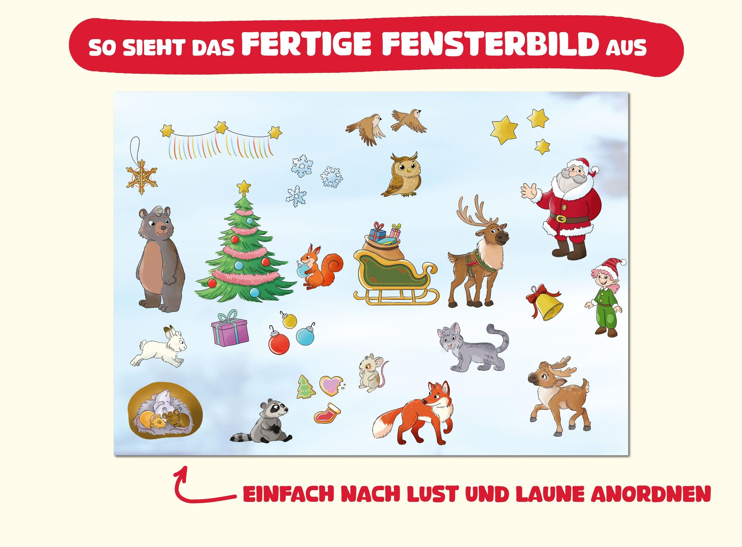 ¿ Mit 24 Fensterbildern aus Folie: Jeden Tag wird ein neues Bild ans Fenster geklebt - bis am 24. Dezember ein großes, stimmungsvolles Weihnachtsbild mit Fanny und ihren Freunden entsteht.