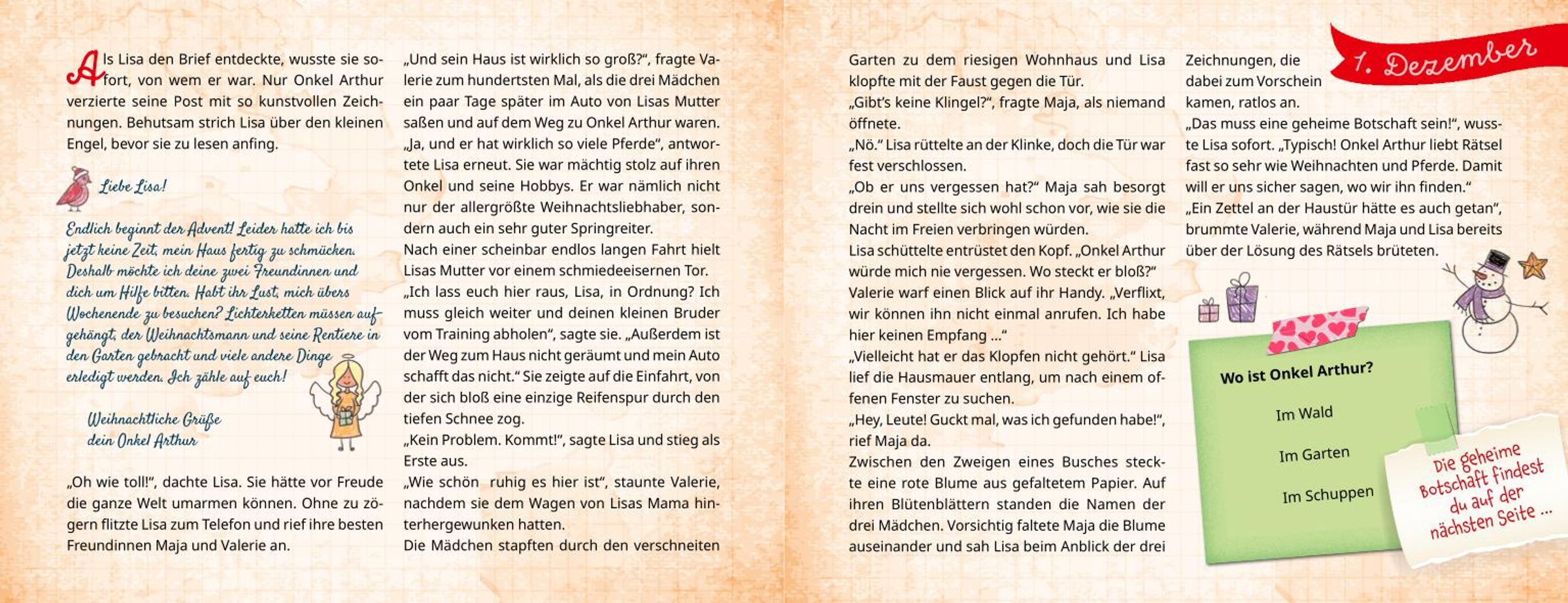 Lisa, Valerie und Maja freuen sich so darauf die Woche vor Weihnachten auf dem Reiterhof von Onkel Arthur zu verbringen. Das Haus ist riesengroß und die schönen Pferde erst ... Wahnsinn!