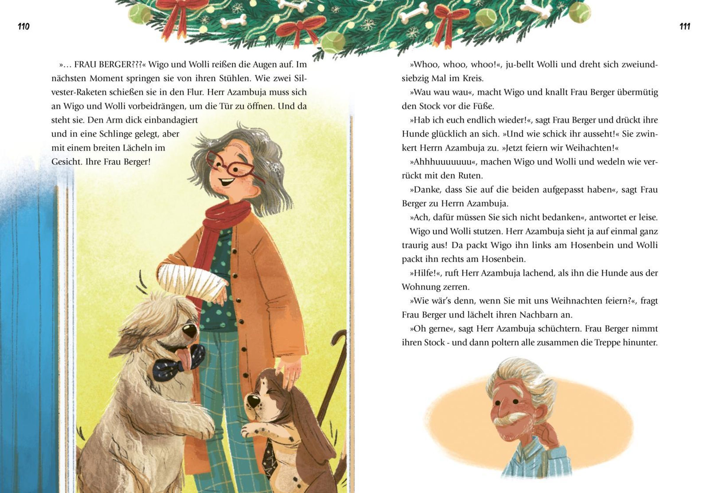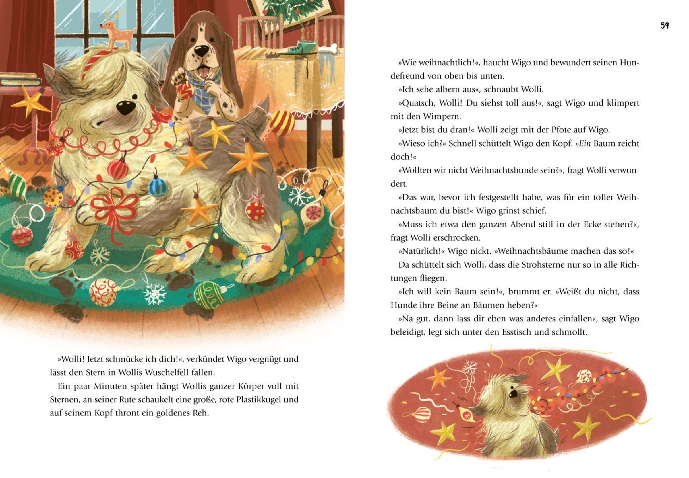 Die beiden Hunde Wigo und Wolli sind außer sich vor Freude! Weihnachten steht vor der Tür! Doch dann rutscht ihr Frauchen auf dem Geschenkpapier aus und muss ins Krankenhaus. Für die beiden Fellnasen ist klar: Nun ist es an ihnen, das Fest zu retten! Zum Glück wissen die Hunde-Freunde genau, wie Weihnachten geht. Ein Weihnachtsbaum? Der Wäscheständer tut's auch! Ein Festessen? Knochen schmecken immer! Und wirbelschöner Weihnachtsschnee? Mit den weißen Federn aus dem Sofakissen wird's bestimmt extrakuschelig. Katze Annabel bleibt skeptisch. Ob das gutgeht?