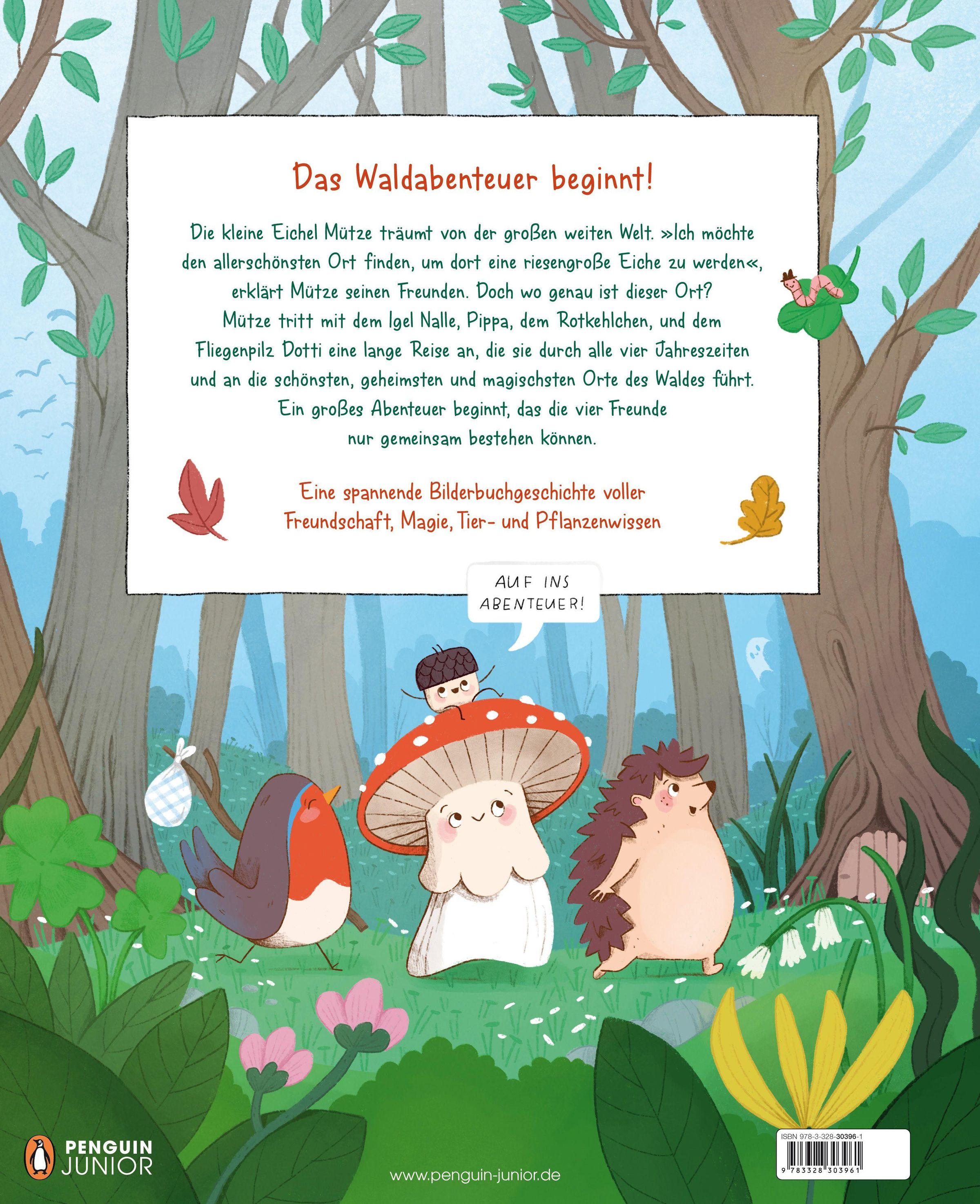 Die kleine Eichel 'Mütze' träumt von der großen weiten Welt. 'Ich möchte den allerschönsten Ort finden, um dort eine riesengroße Eiche zu werden', erklärt Mütze seinen Freunden. Doch wo genau ist dieser Ort? Mütze tritt mit dem Igel Nalle, Pippa, dem Rotkehlchen, und dem Fliegenpilz Dotti eine lange Reise an, die sie durch alle vier Jahreszeiten und an die schönsten, geheimsten und magischsten Orte des Waldes führt. Ein großes Abenteuer beginnt, das die vier Freunde nur gemeinsam bestehen können.