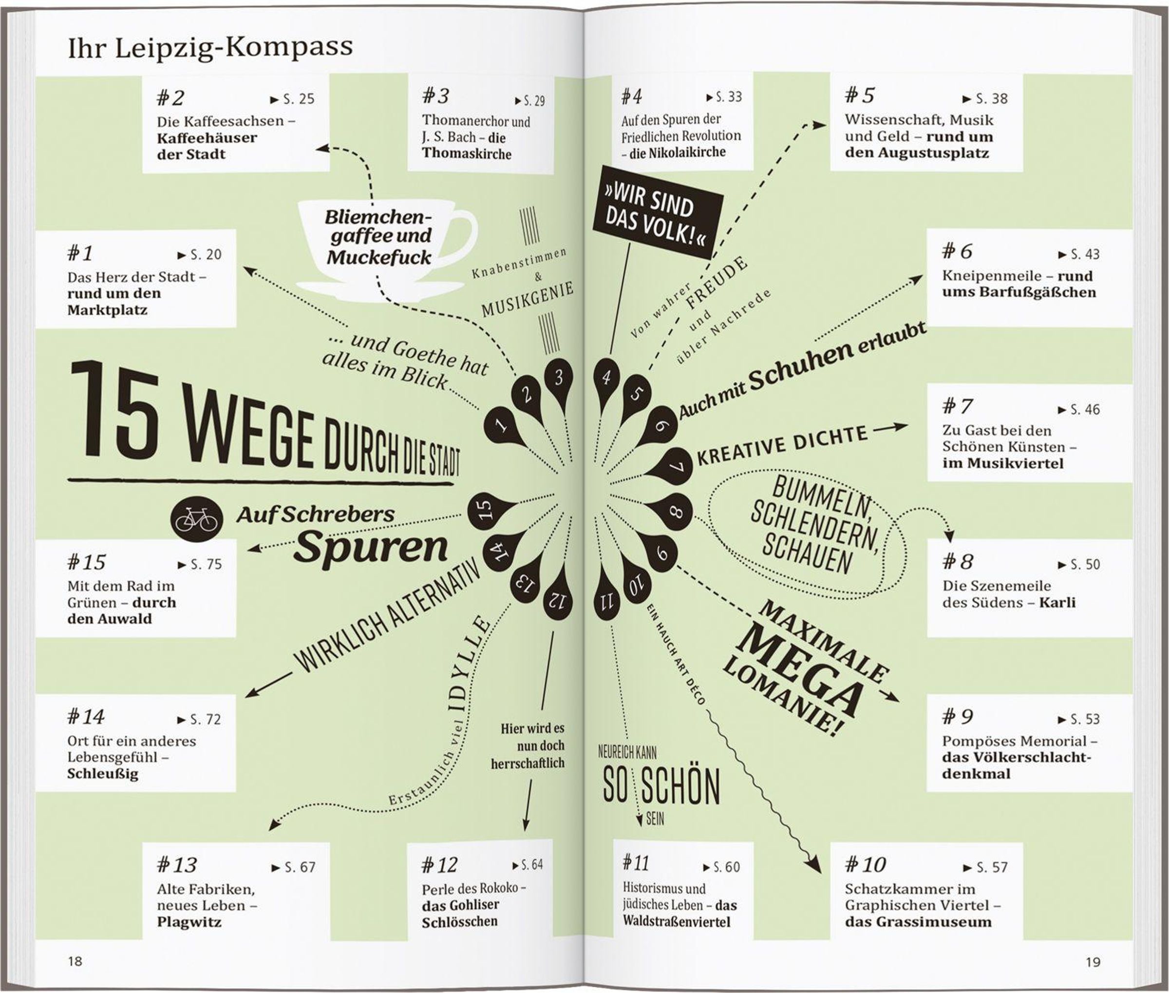 In eigenen Kapiteln erfahren Sie, wo es sich in fremden Betten gut schläft, wo Sie glücklich satt werden, wohin die Leipziger zum Stöbern und Entdecken gehen und wohin es sie zieht, wenn die Nacht beginnt.