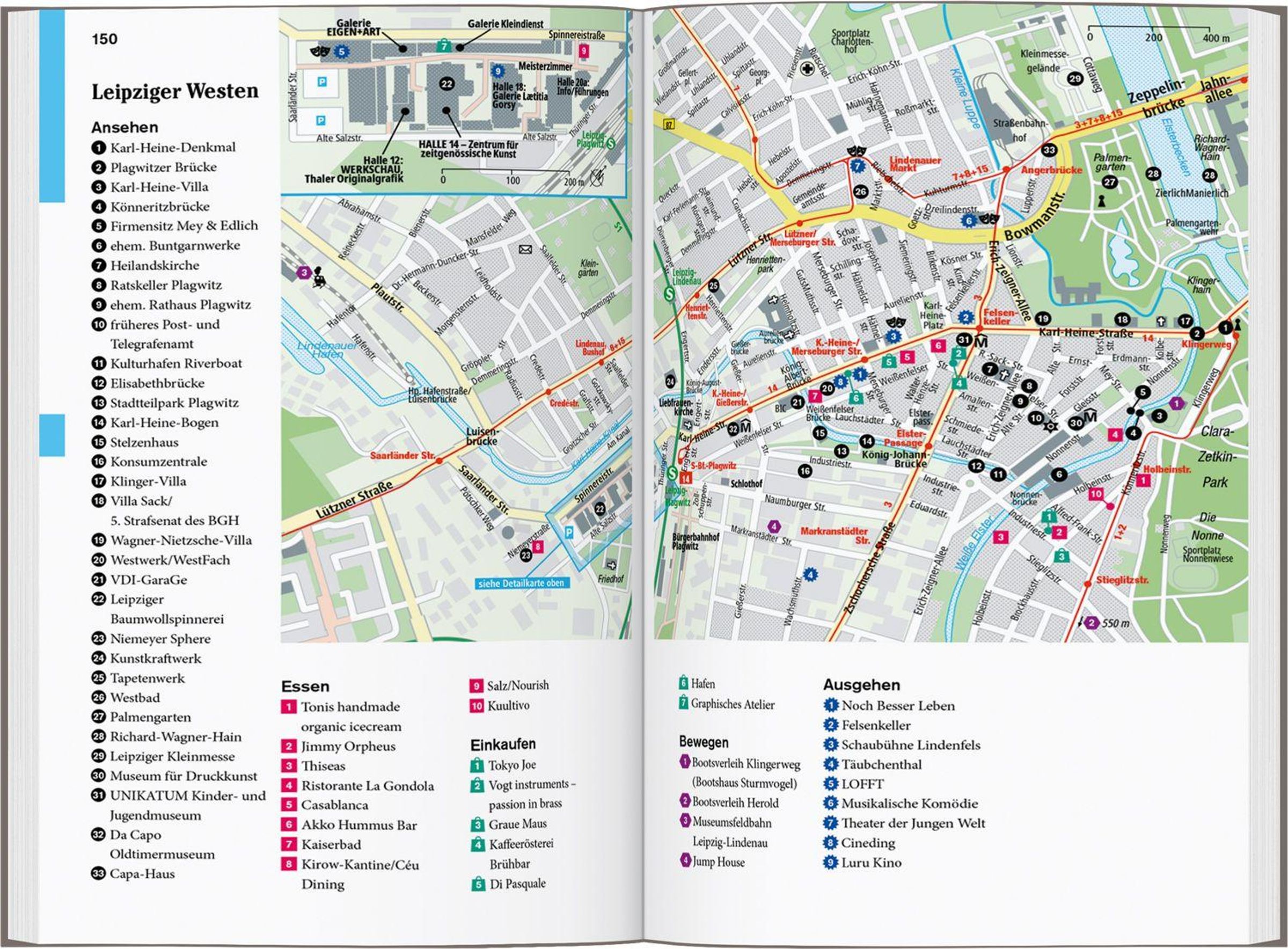 Die Karten: 7 Citypläne, 17 Tourenkarten, Übersichtskarte mit den Highlights in Leipzig und Umgebung, Schnellüberblick zu jedem Stadtviertel plus eine große Reisekarte