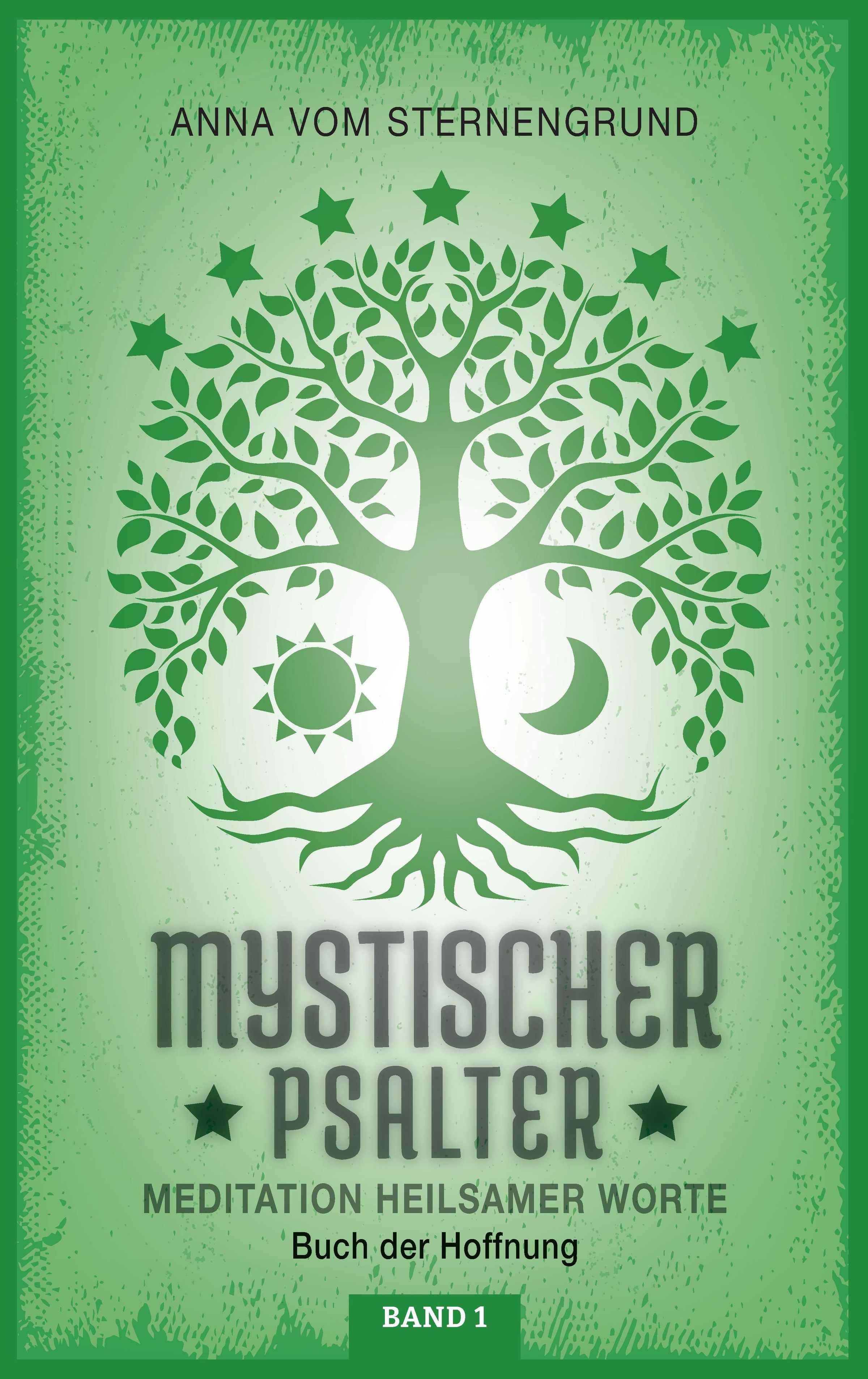 Der Umschlag zeigt einen grünen Baum mit Blättern, Sternen, Sonne und Mond. Oben steht "Anna vom Sternengrund"., Buch