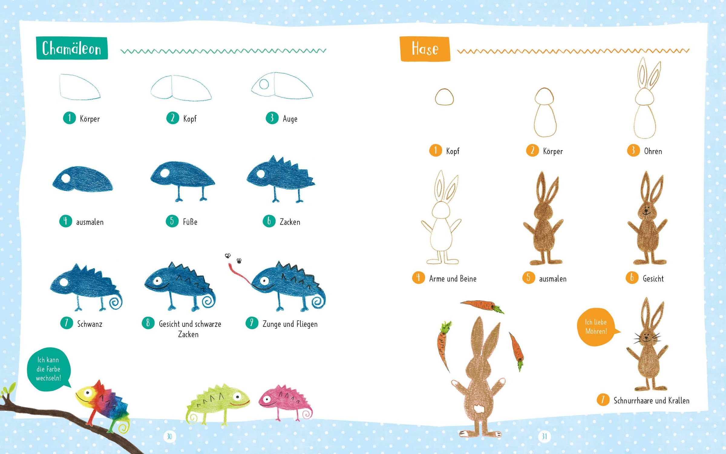 - Mehr als 50 Lieblingstierein wenigen Schritten zeichnen