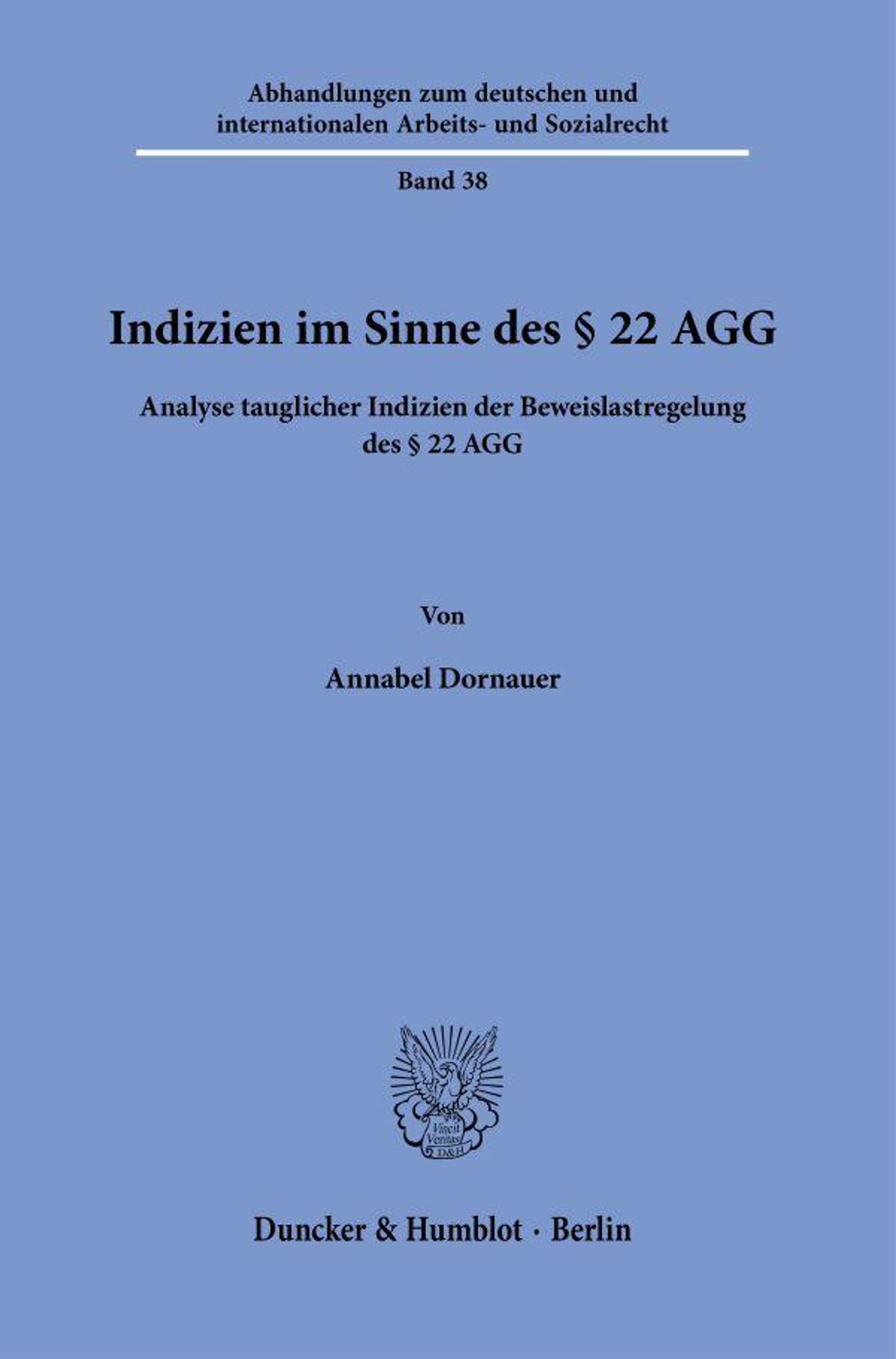 'Indicative Facts within the Meaning of Section 22 AGG. Analysis of Suitable Indicia under the Burden-of-Proof Rule of Section 22 AGG': One of the most widely debated issues in connection with Section 22 AGG concerns the question of under which circumstances sufficient indicative facts within the meaning of Section 22 AGG exist. The dissertation focuses on this question. To this end, the study first undertakes an in-depth examination of possible factual scenarios that may constitute suitable indicia. Subsequently, these constellations of indicative facts are evaluated and systematically categorized.