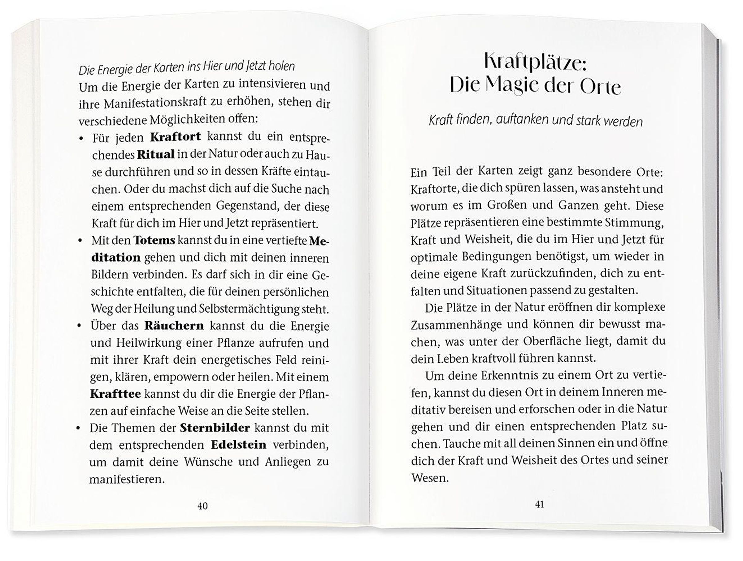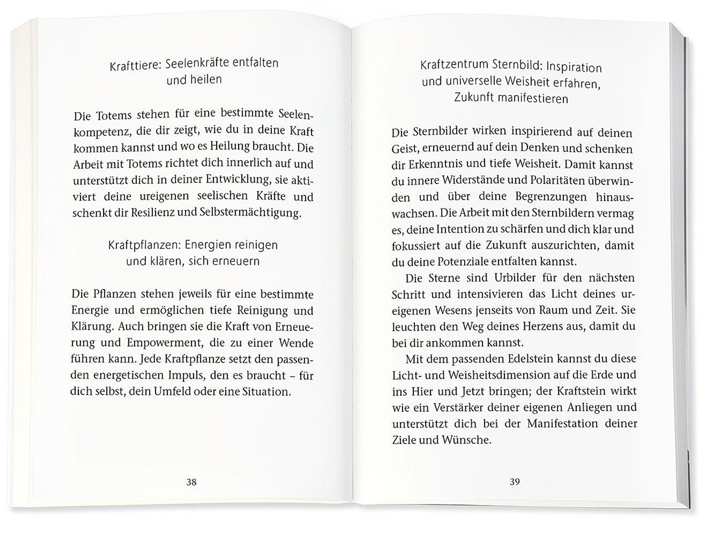 Keine Zeit ist besser geeignet, uns in unsere eigene Kraft zu bringen als die der Rauhnächte - diese besondere Zeit zwischen der Wintersonnwende und dem Dreikönigstag. Die48 wunderschönen Karten , vier für jede der zwölf Nächte, und das dazugehörige Booklet dieses Orakel-Decks offenbaren dir einen Zugang zur Weisheit der Naturmächte. Mithilfe von Kraftorten, Krafttieren, Pflanzen sowie Sternbildern und ihren entsprechenden Heilsteinen kannst du dich mit einer spirituellen Welt lichtvoller Kräfte verbinden. Darüber hinaus schenken sie dir Heilung, Inspiration und Weisheit. Die dazugehörenden Rituale, Affirmationen, und Meditationen ermöglichen dir einen Zugang zu deiner Kraft und verbinden dich mit den zyklischen Lebenskräften. Jede einzelne Karte bietet dir darüber hinaus die Möglichkeit zum Orakeln und steht für die Vorausschau des neuen Jahres.