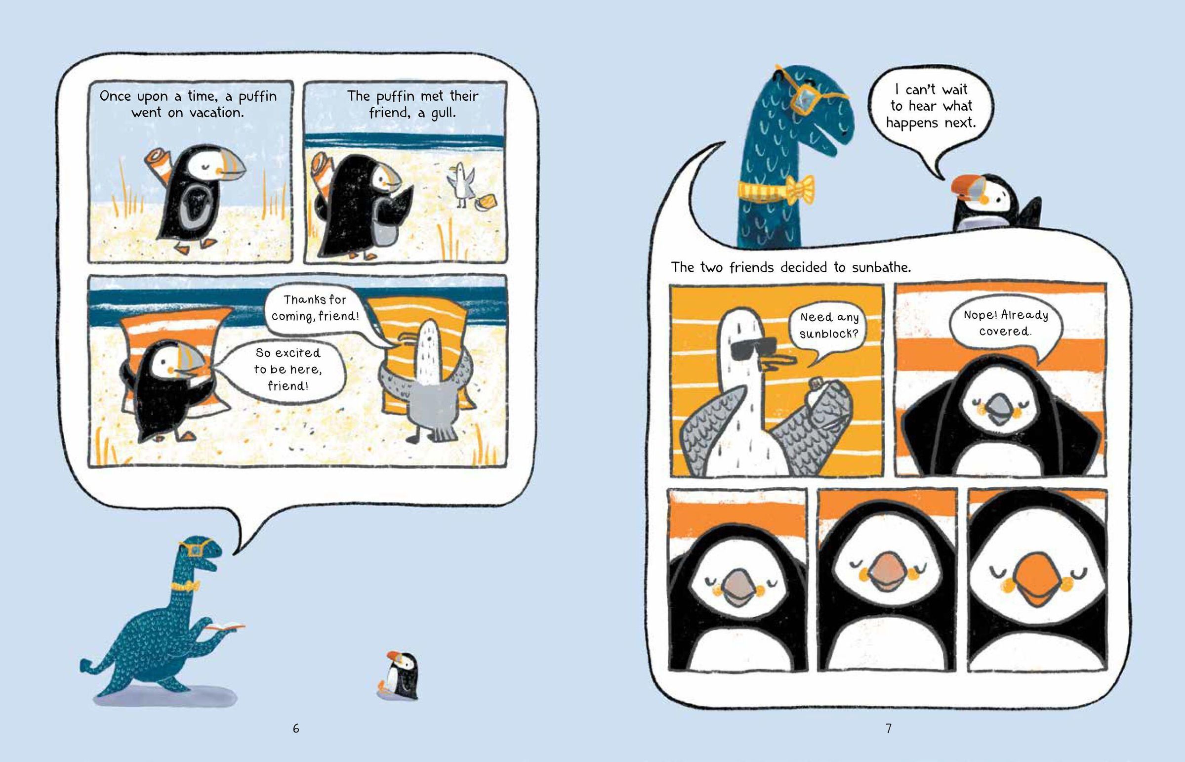 Loch Ness Monster has written a fabulous book about why certain birds have their unusual coloring. According to Ness, the stories have drama, excitement, adventure! And most important of all, scientific truths. There's only one problem, as Puffin keeps pointing out: the "facts" in the stories aren't true! For example, a puffin's colorful beak isn't the result of a sunburn, as Ness tells it. It's how they attract a mate. And that means Ness's book contains stories, not science. Will Ness ever understand the difference between the two - and why it matters?