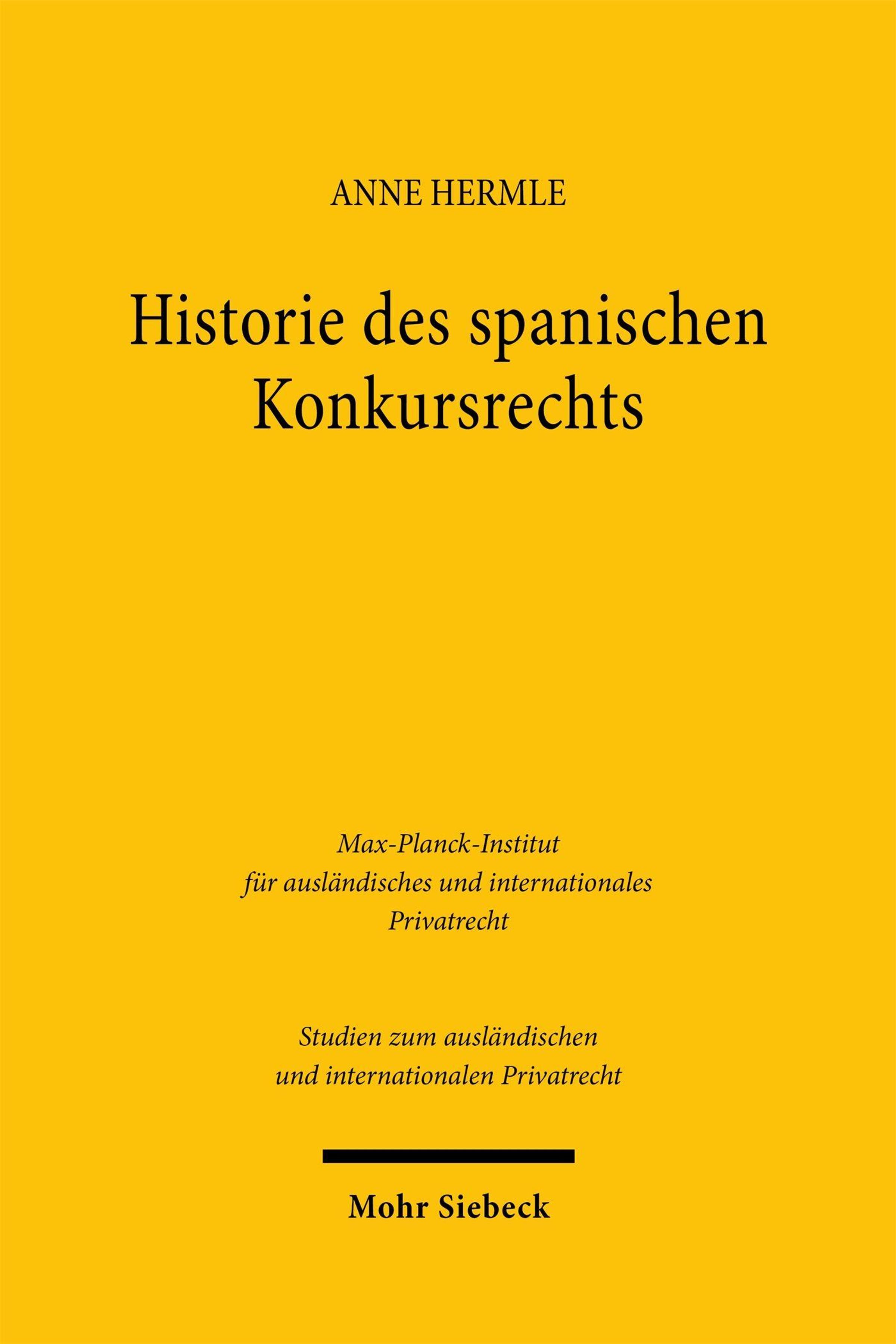 "ANNE HERMLE - Historie des spanischen Konkursrechts" auf gelbem Hintergrund. Verleger: Mohr Siebeck., Buch