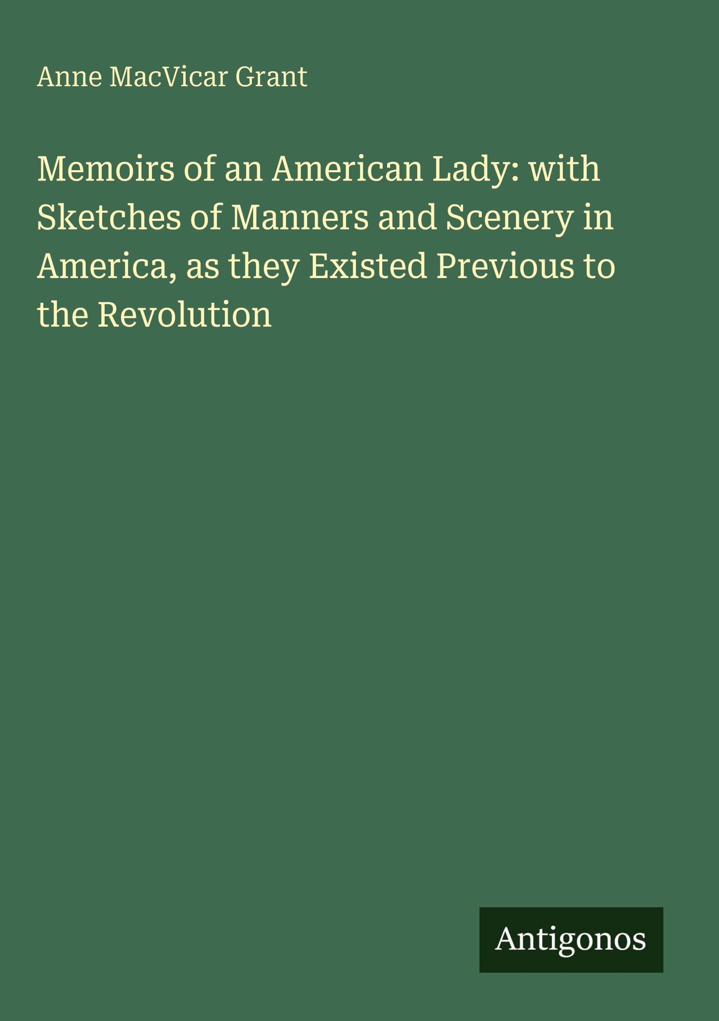 Weitere Ausgaben von Memoirs of an American Lady: with Sketches of Manners and Scenery in America, as they Existed Previous to the Revolution |