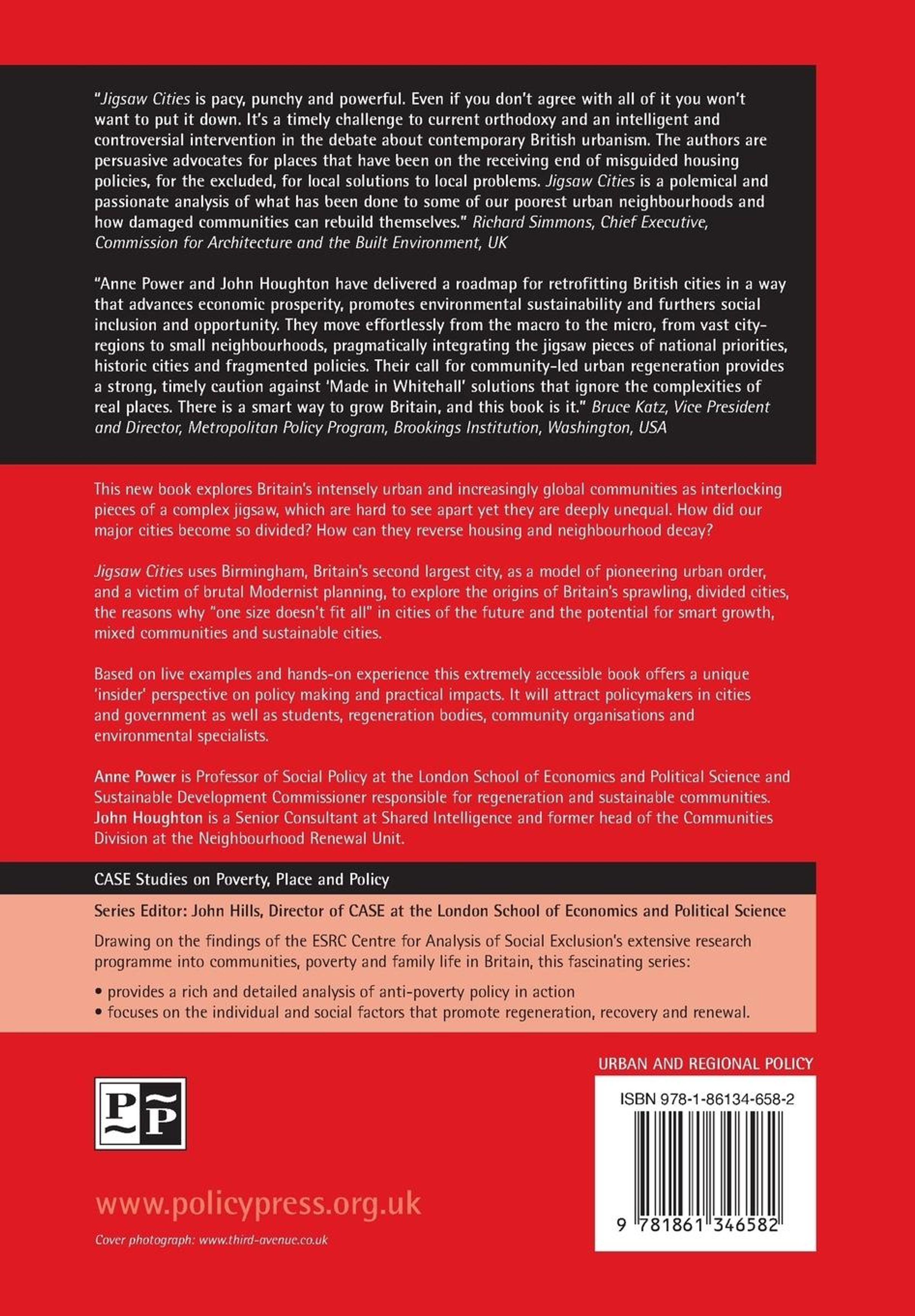 This new book explores Britain's intensely urban and increasingly global communities as interlocking pieces of a complex jigsaw; they are hard to see apart yet they are deeply unequal. Jigsaw Cities examines these issues using Birmingham, Britain's second city, as a model of pioneering urban order and as a victim of brutal Modernist planning.