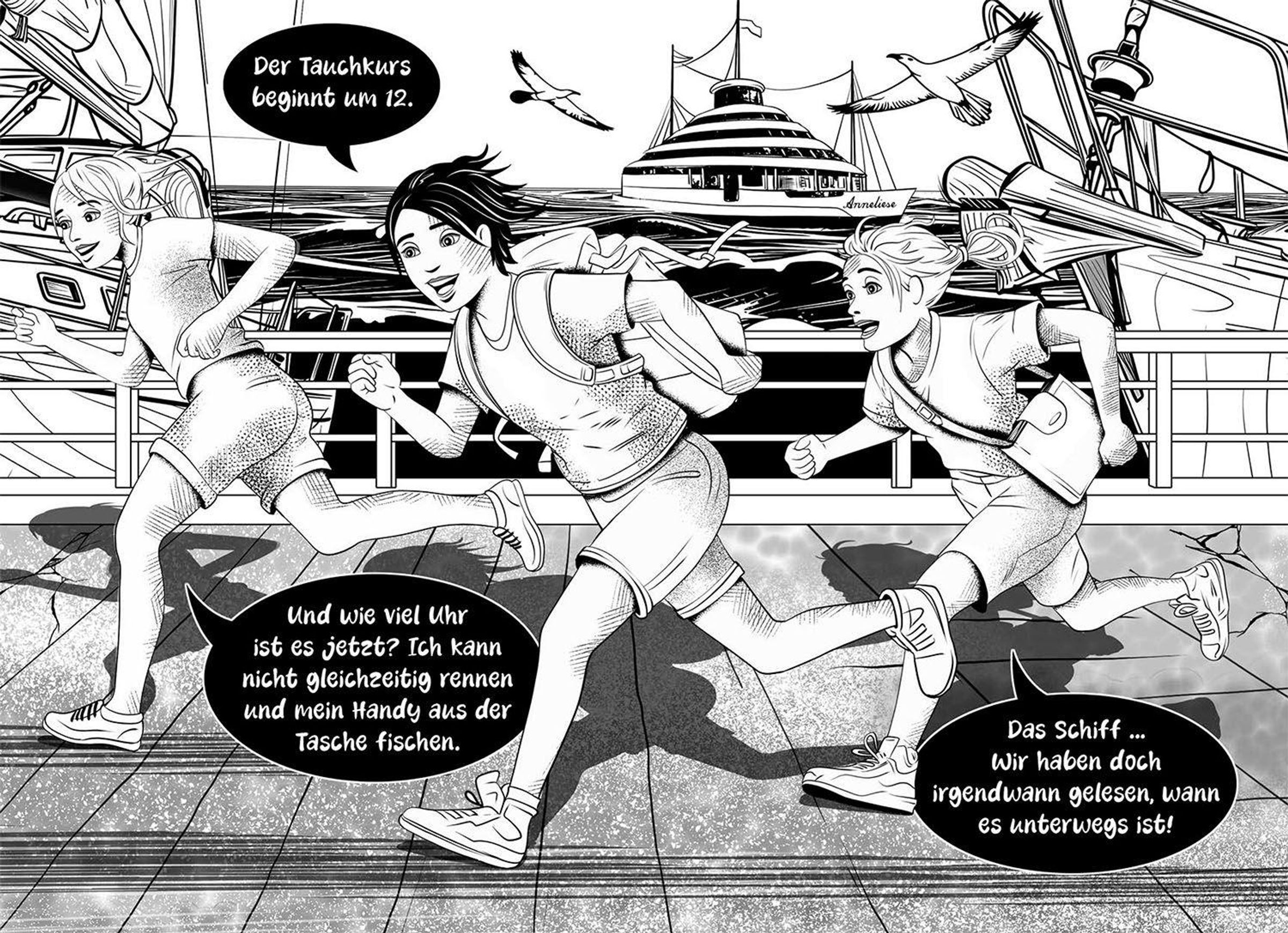 Ein verschwundener Kompass, ein rätselhaftes Tagebuch und ein Schiffswrack in den Tiefen der Ostsee stellen Kim, Franzi und Marie vor einen Fall, der nicht nur Mut, sondern auch echten Spürsinn verlangt. Doch das Abenteuer fordert nicht nur die drei Freundinnen heraus: In diesem Geheimbuch ermitteln auch die Lesenden selbst. Verschlossene Seiten, knifflige Codes und spannende Rätsel machen das Abenteuer lebendig. Wer Schritt für Schritt die Hinweise entschlüsselt, taucht gemeinsam mit den drei !!! immer tiefer ein in das Geheimnis unter dem Meer.