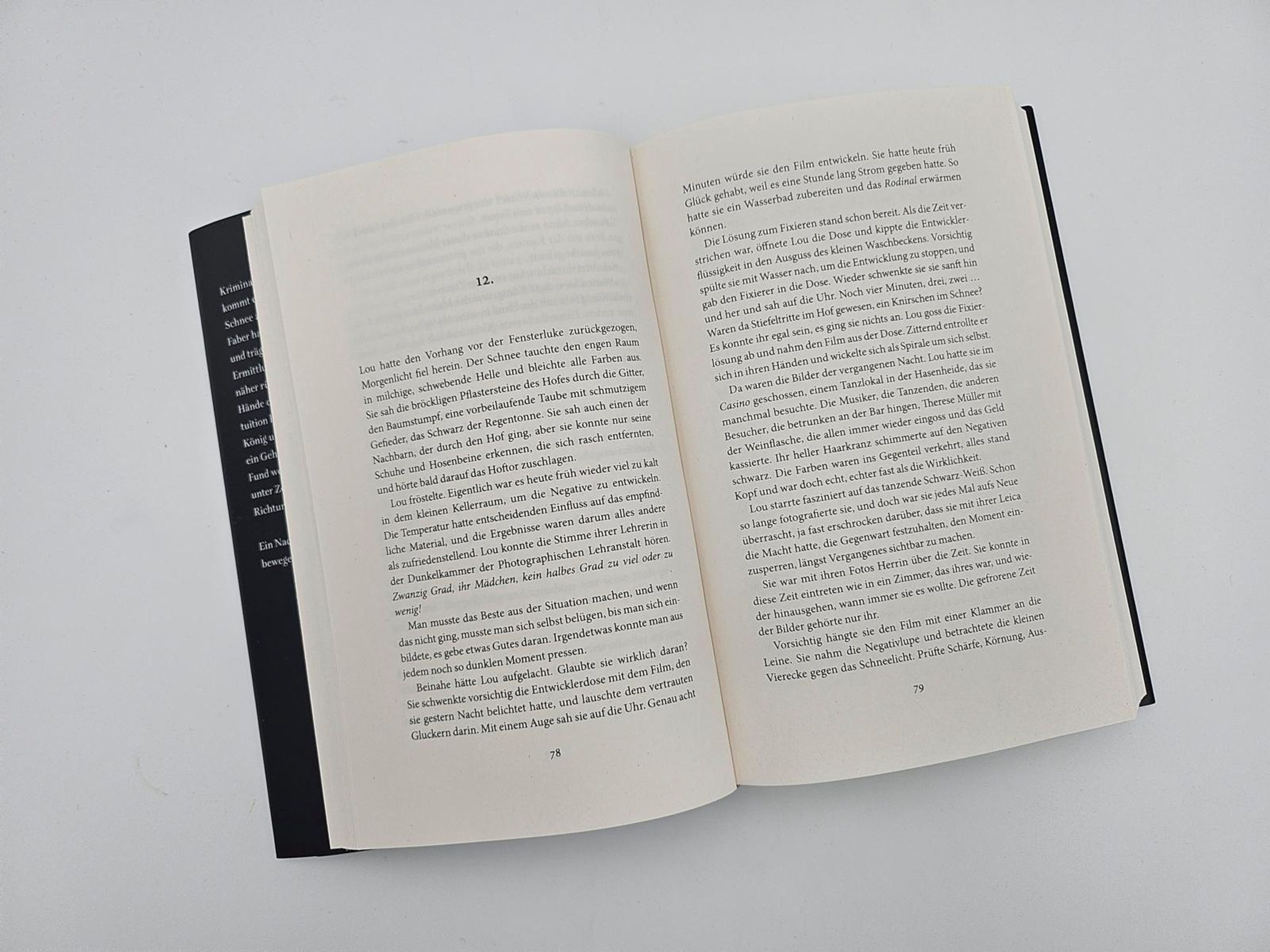 "Anne Stern: Die Weiße Nacht. Der erste Fall für Lou & König. Spiegel Bestseller-Autorin." Kameraobjektiv mit Karussell., Buch