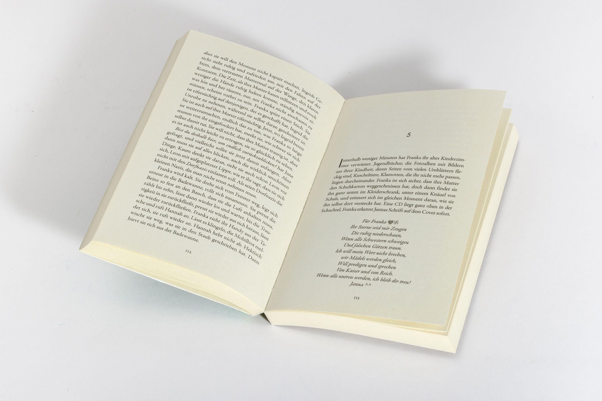 Inmitten des Schweigens ihrer Familie hat Franka sich schon immer verloren gefühlt. Bereits ihre Großmutter, genannt die Fuchsin, hortete Geheimnisse wie die schwarzen Steine in ihrer Schürze. Als Franka mit Ende Zwanzig in die fränkische Provinz mit den Himmelsweihern und Spiegelkarpfen zurückfährt, sieht sie endlich hin: Wie das war in den Nullerjahren, als Deutschland Weltmeister im eigenen Land werden wollte. Als ihr Vater starb und sie in Patrick und Janna Gleichgesinnte fand, die Unsicherheit mit Krawall, Frustration mit Faustschlägen übertünchten. Als sie immer tiefer in die rechte Szene einstieg. Sie beginnt Fragen zu stellen und sucht nach einer Haltung zur Vergangenheit.