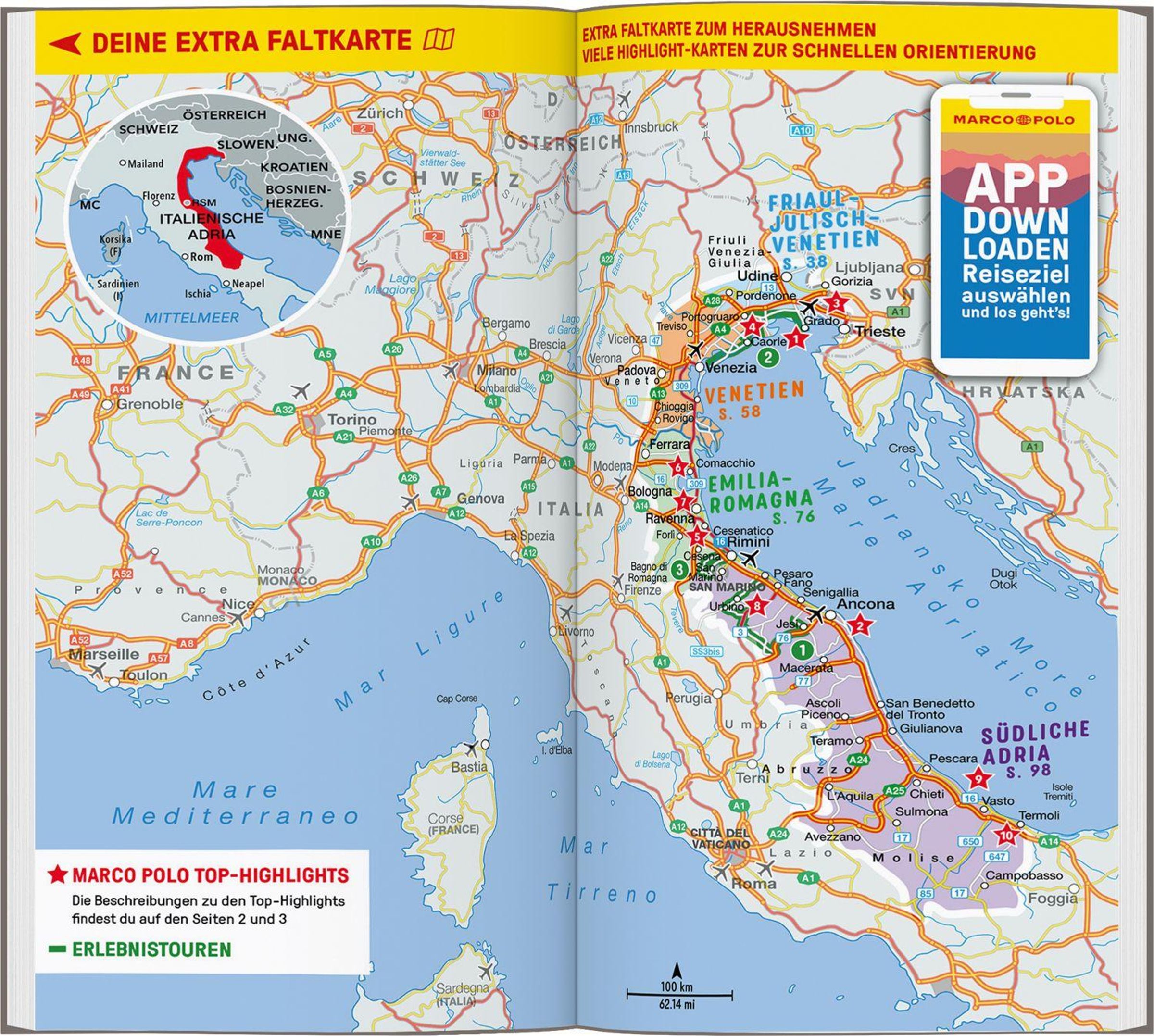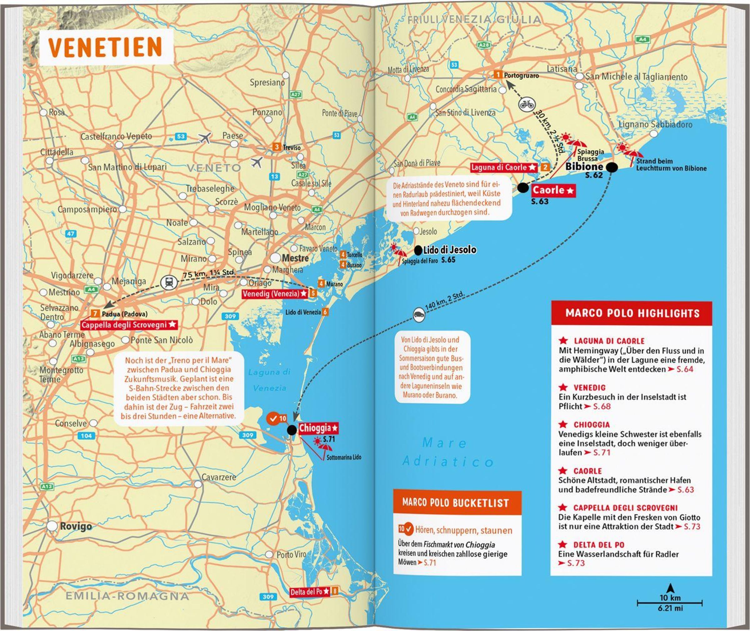Mit deinem MARCO POLO Reiseführer im Gepäck entdeckst du, wie vielseitig die Landschaft im Rücken der endlosen Liegestuhlreihen in Wahrheit ist: Erkunde malerische Altstädte auf Felsen über dem Meer, elegante Seebäder oder kleine Fischerorte. Im Nordosten die Klippen bei Triest, dann die Lagunenseen von Grado oder das sagenhafte Venedig sind nur einige der vielen Highlights, die deinen Italienurlaub zum unvergesslichen Erlebnis machen!