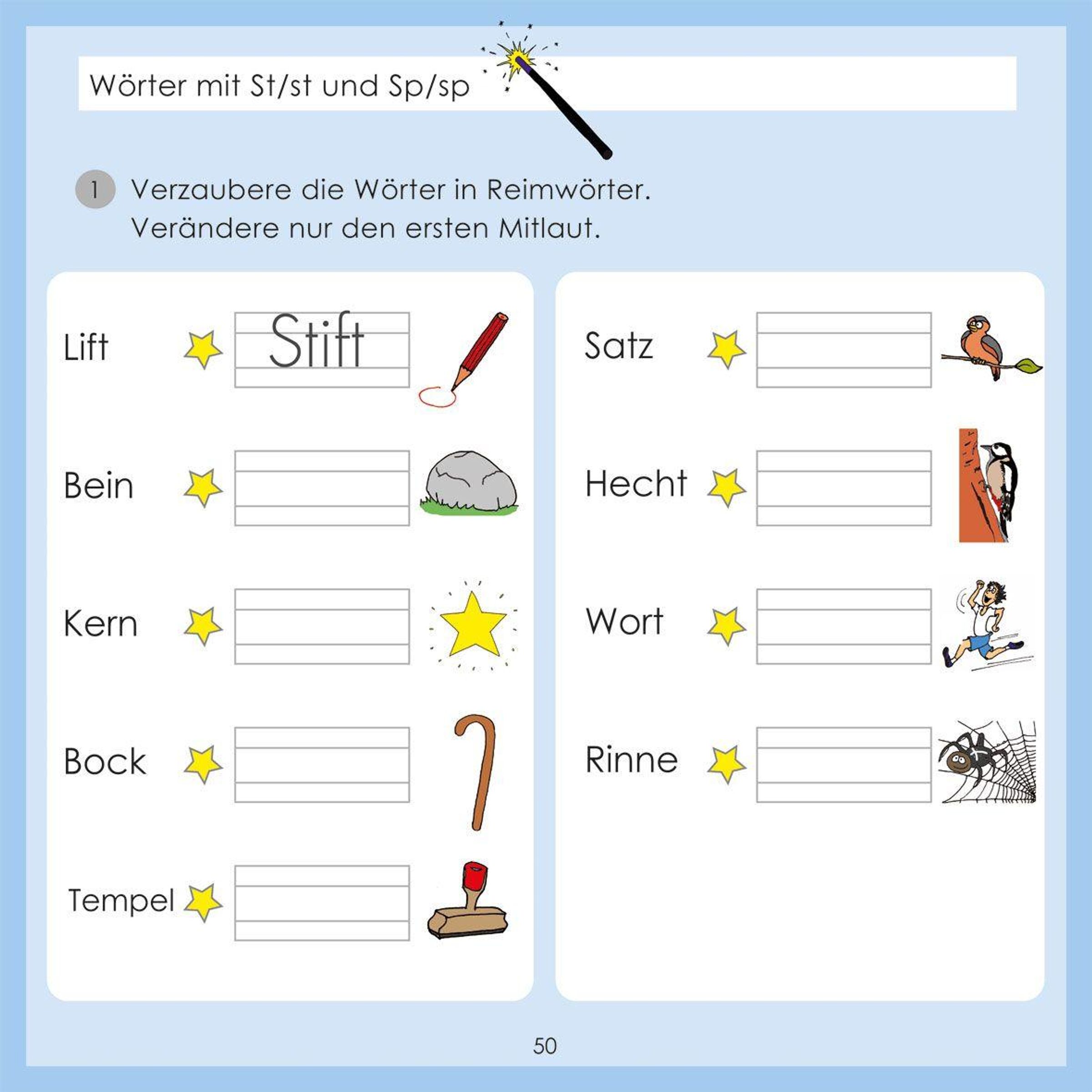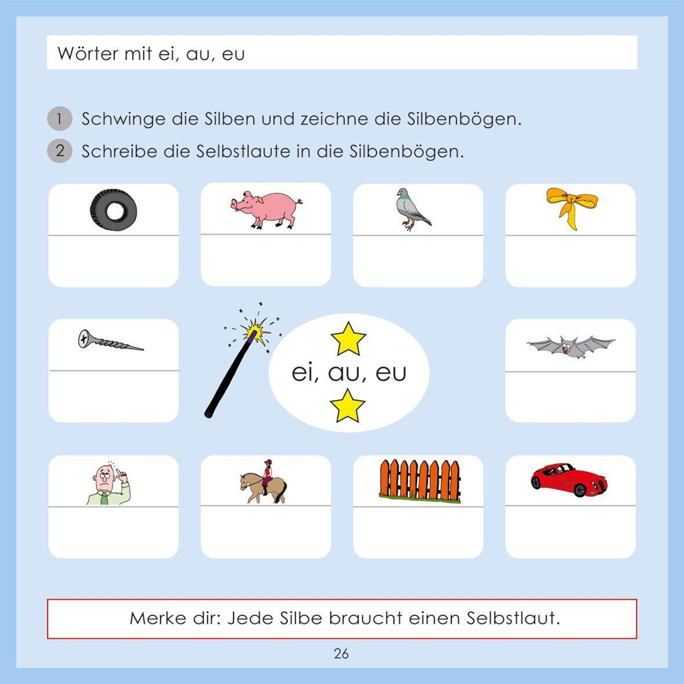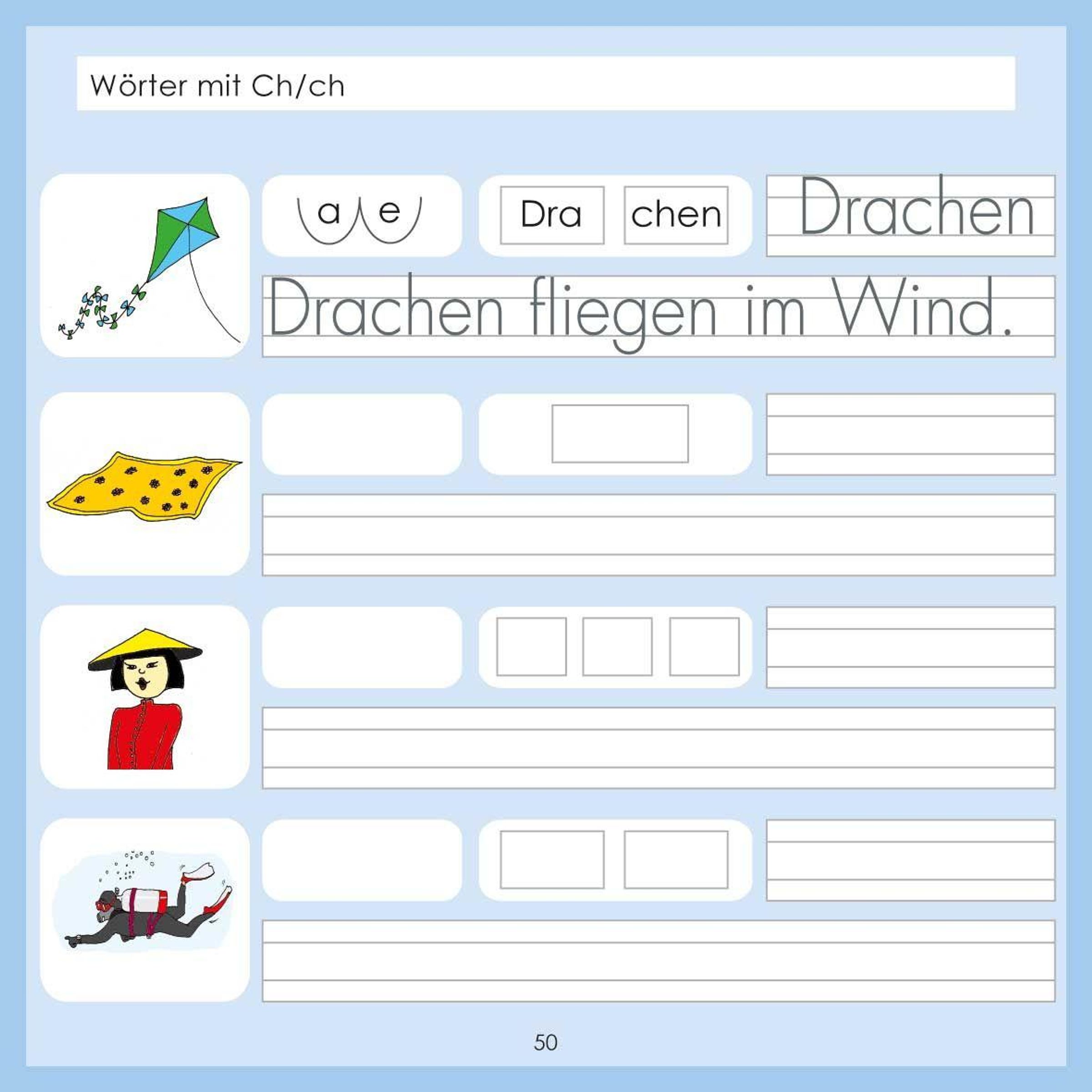 Inhalt: Vokale, Umlaute und Diphtonge - Wörter mit x, qu, sp / st, sch, ch, pf, ng - Wörter mit Doppelkonsonanten. 72 farbige Seiten, Format 21 x 21 cm.