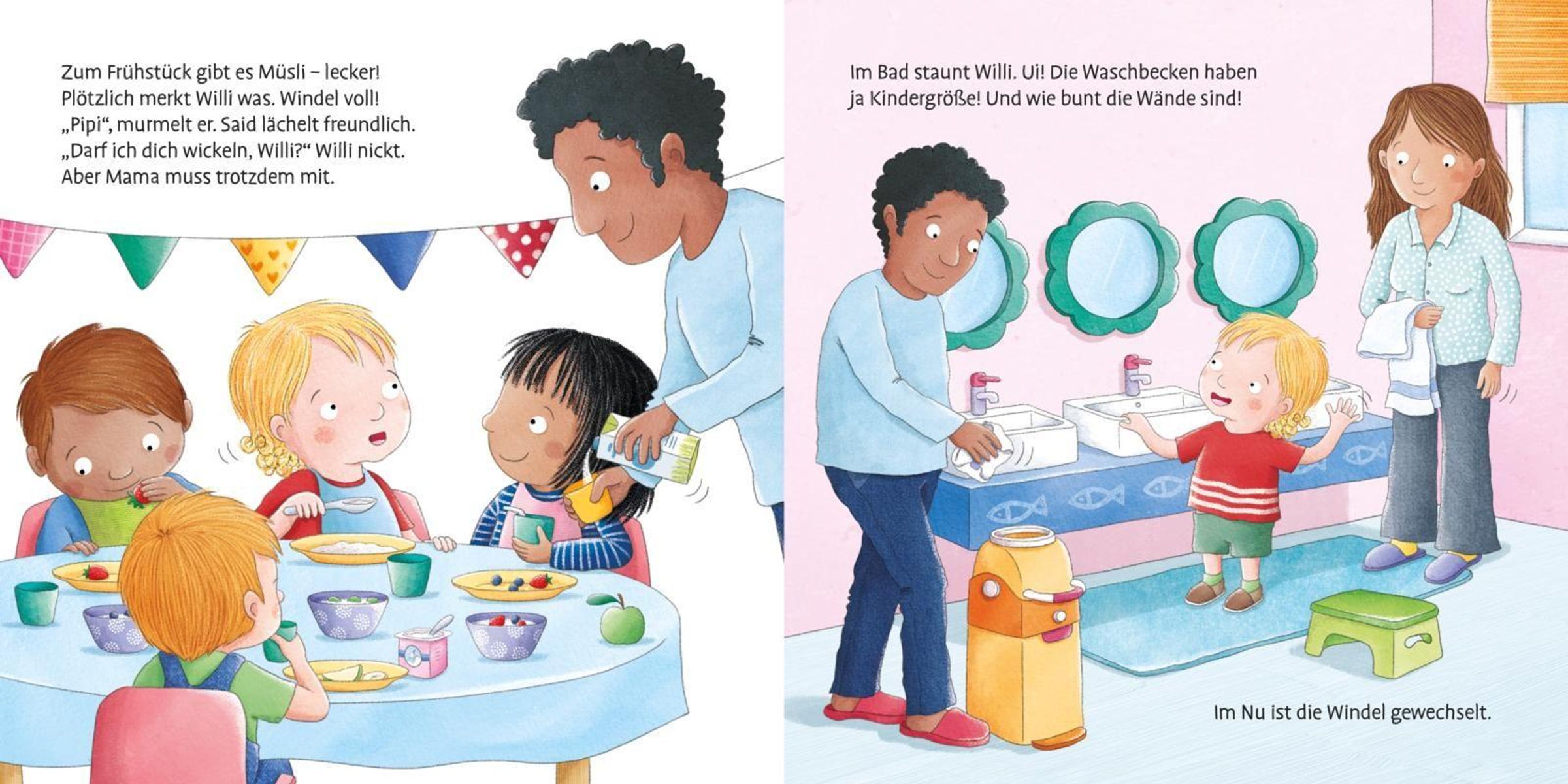 Willi ist aufgeregt: Heute ist sein erster Tag in der Kita. Alles ist neu: So viel Spielzeug, so viele Kinder! Zum Glück ist Mama am Anfang noch da. Doch schnell merkt Willi, dass die Kita ganz viel Spaß machen kann. Bald schon schafft es Willi, allein zu bleiben. Ohne Mama. Was Willi wohl hilft, um mutiger zu werden?