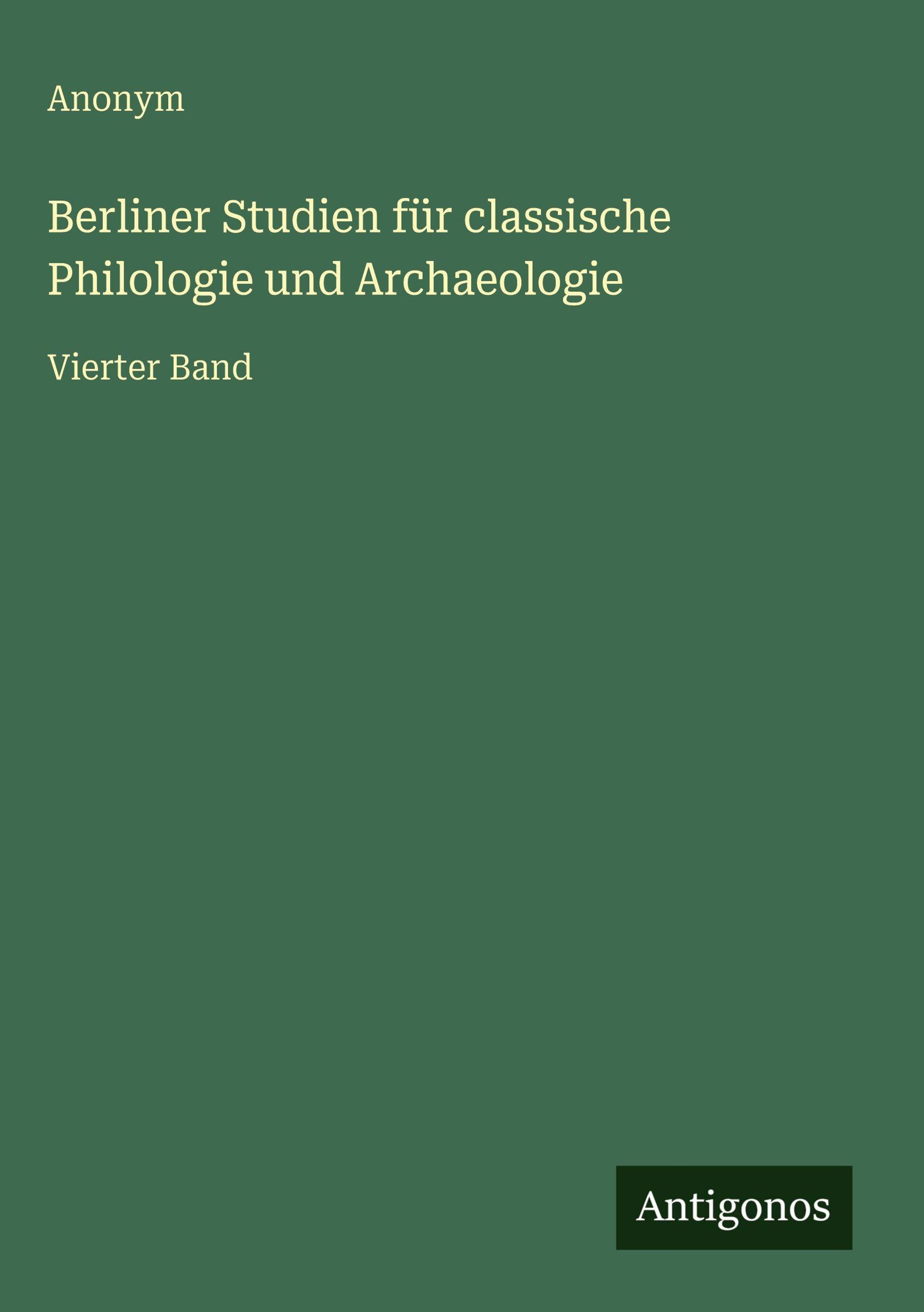 Anonym: Berliner Studien für classische Philologie und Archaeologie, Gebunden