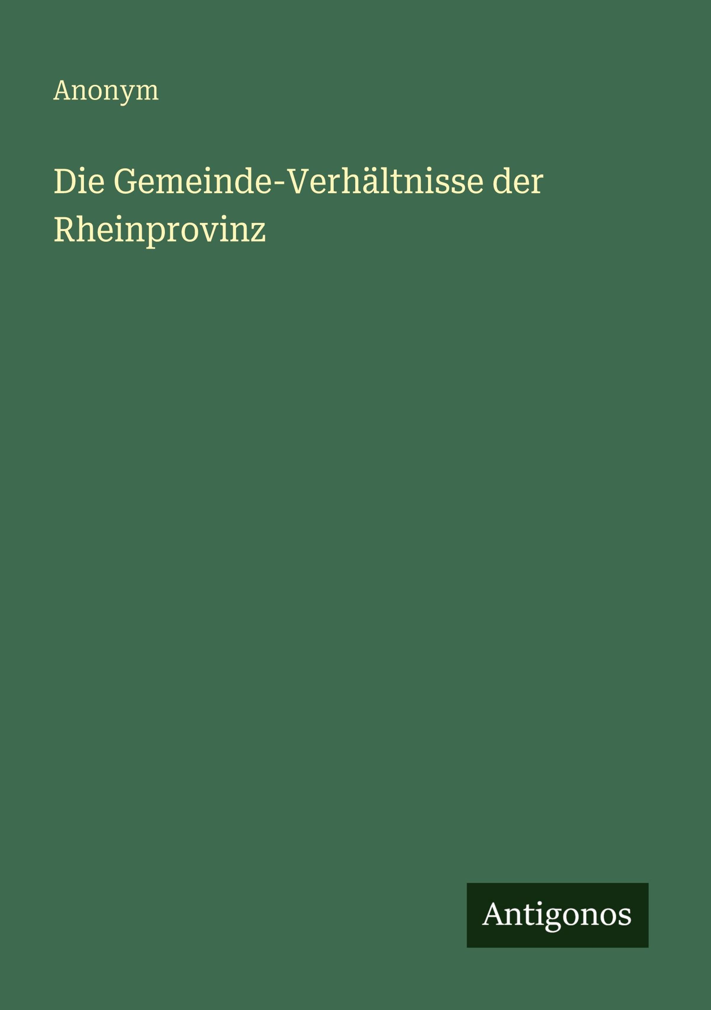 Anonym: Die Gemeinde-Verhältnisse der Rheinprovinz, Buch