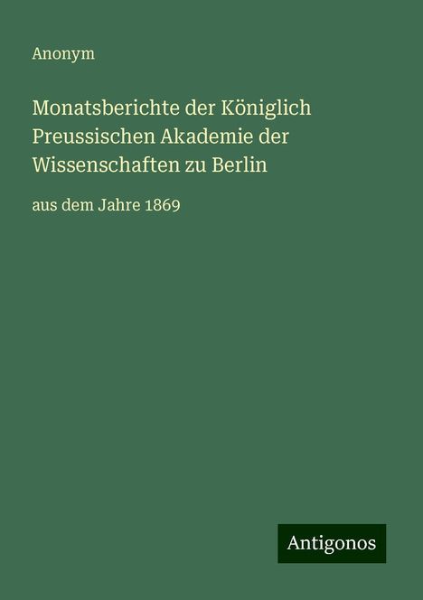 Anonym: Monatsberichte der Königlich Preussischen Akademie d