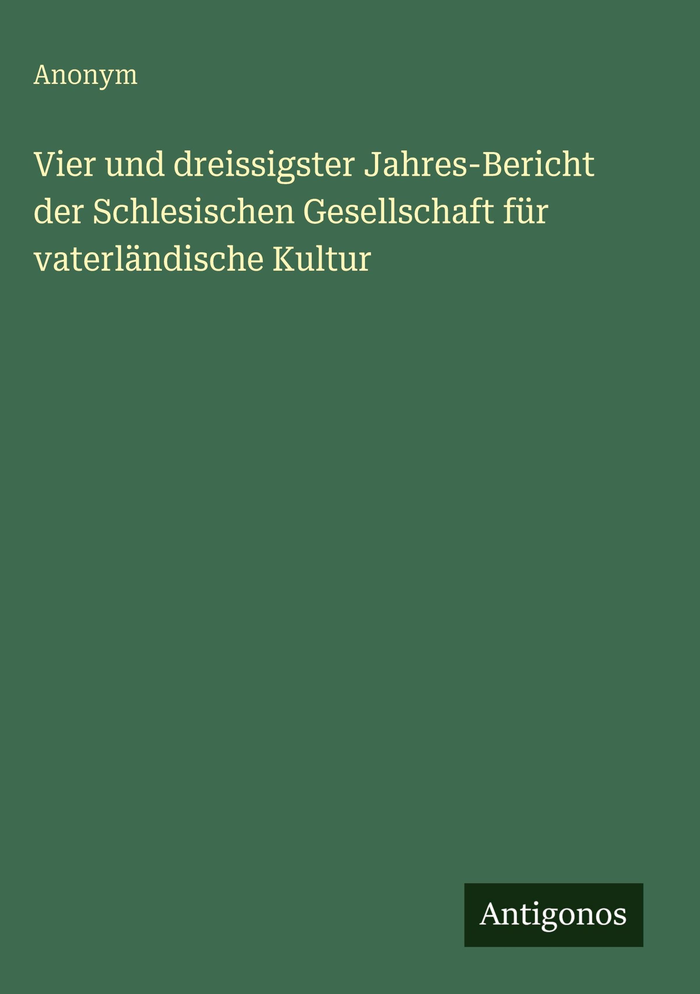 Anonym: Vier und dreissigster Jahres-Bericht der Schlesischen Gesellschaft für vaterländische Kultur, Gebunden