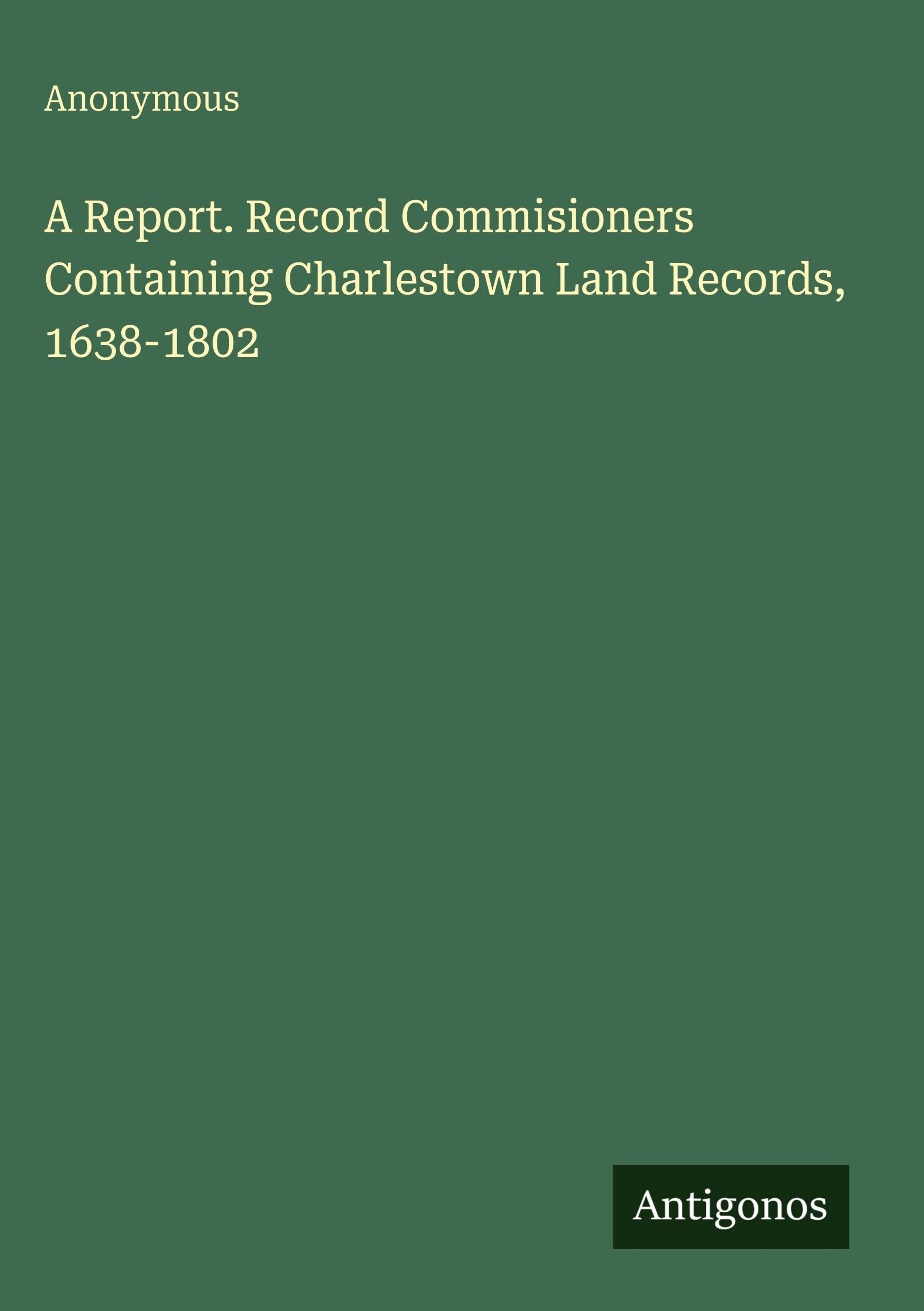 Anonymous: A Report. Record Commisioners Containing Charlestown Land Records, 1638-1802, Gebunden