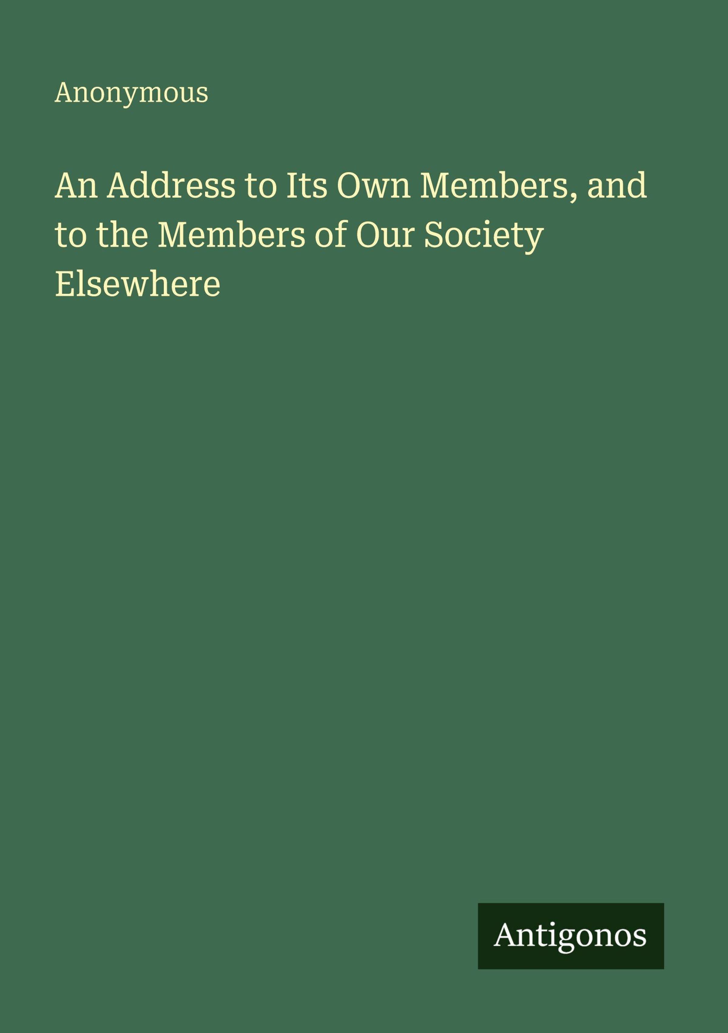An Address to Its Own Members, and to the Members of Our Society Elsewhere