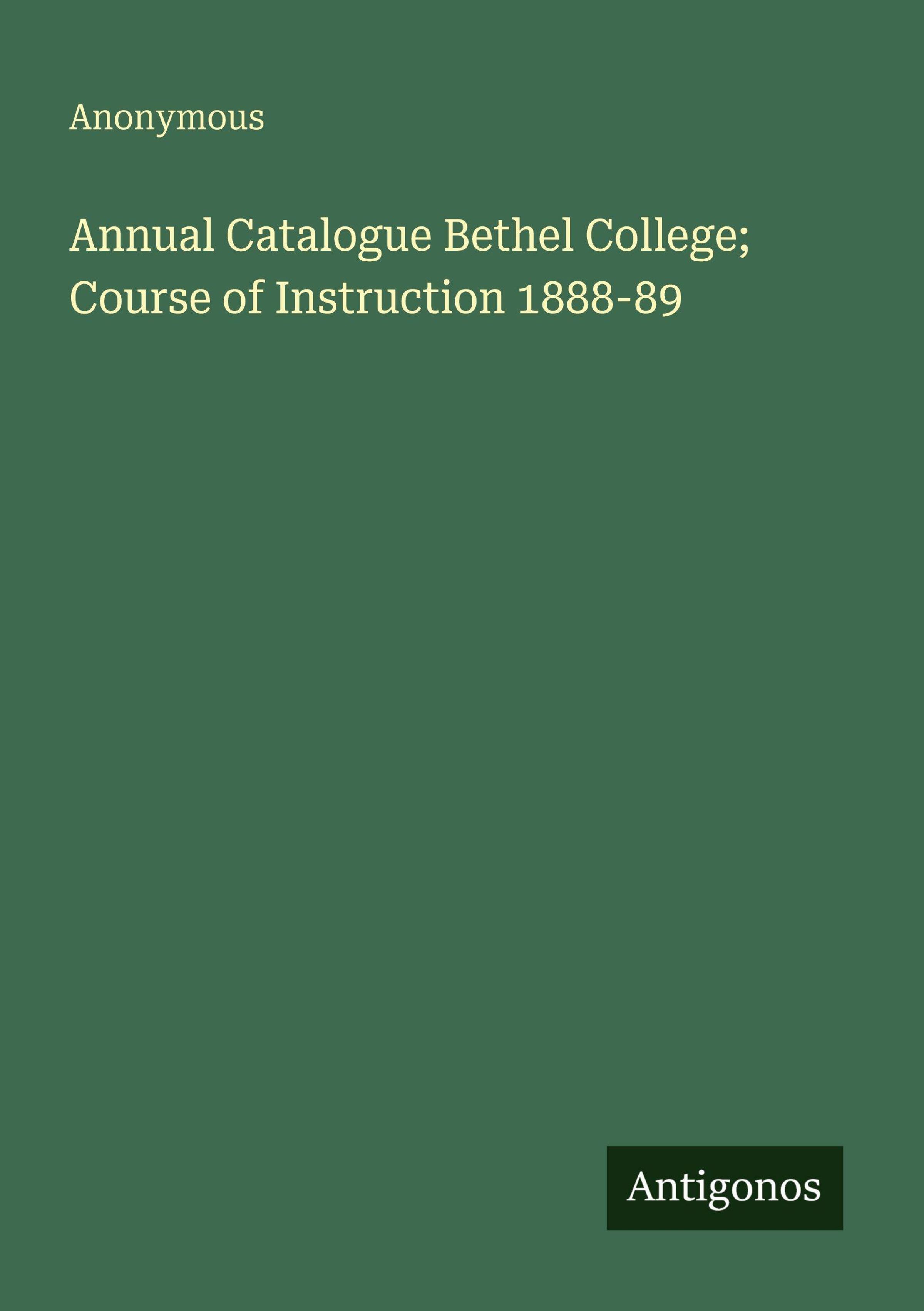 Anonymous: Annual Catalogue Bethel College; Course of Instruction 1888-89, Kartoniert / Broschiert