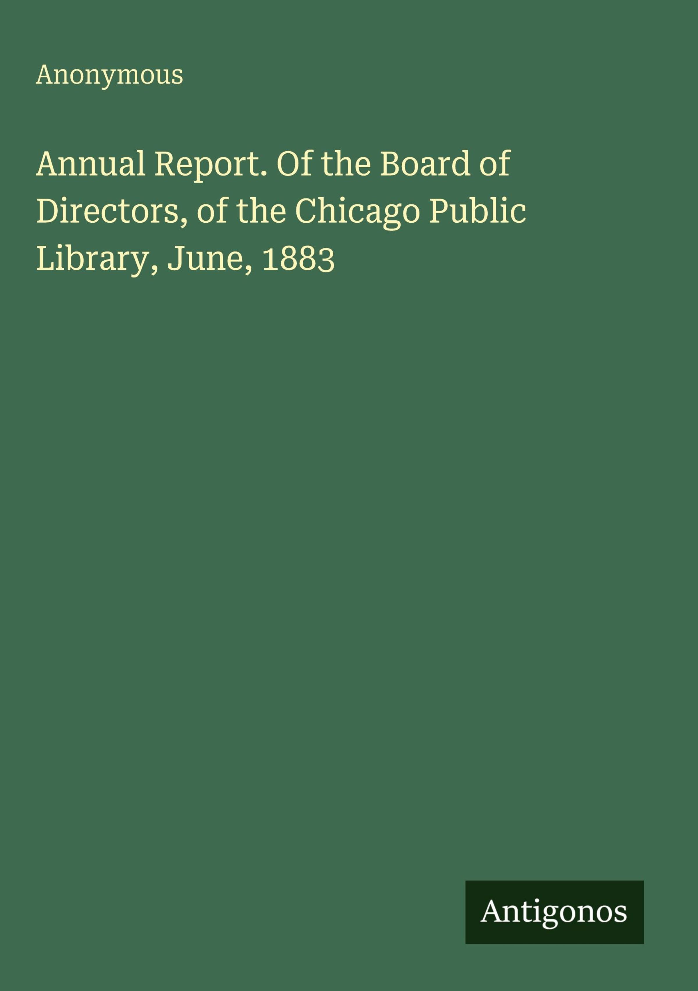 Anonymous: Annual Report. Of the Board of Directors, of the Chicago Public Library, June, 1883, Gebunden
