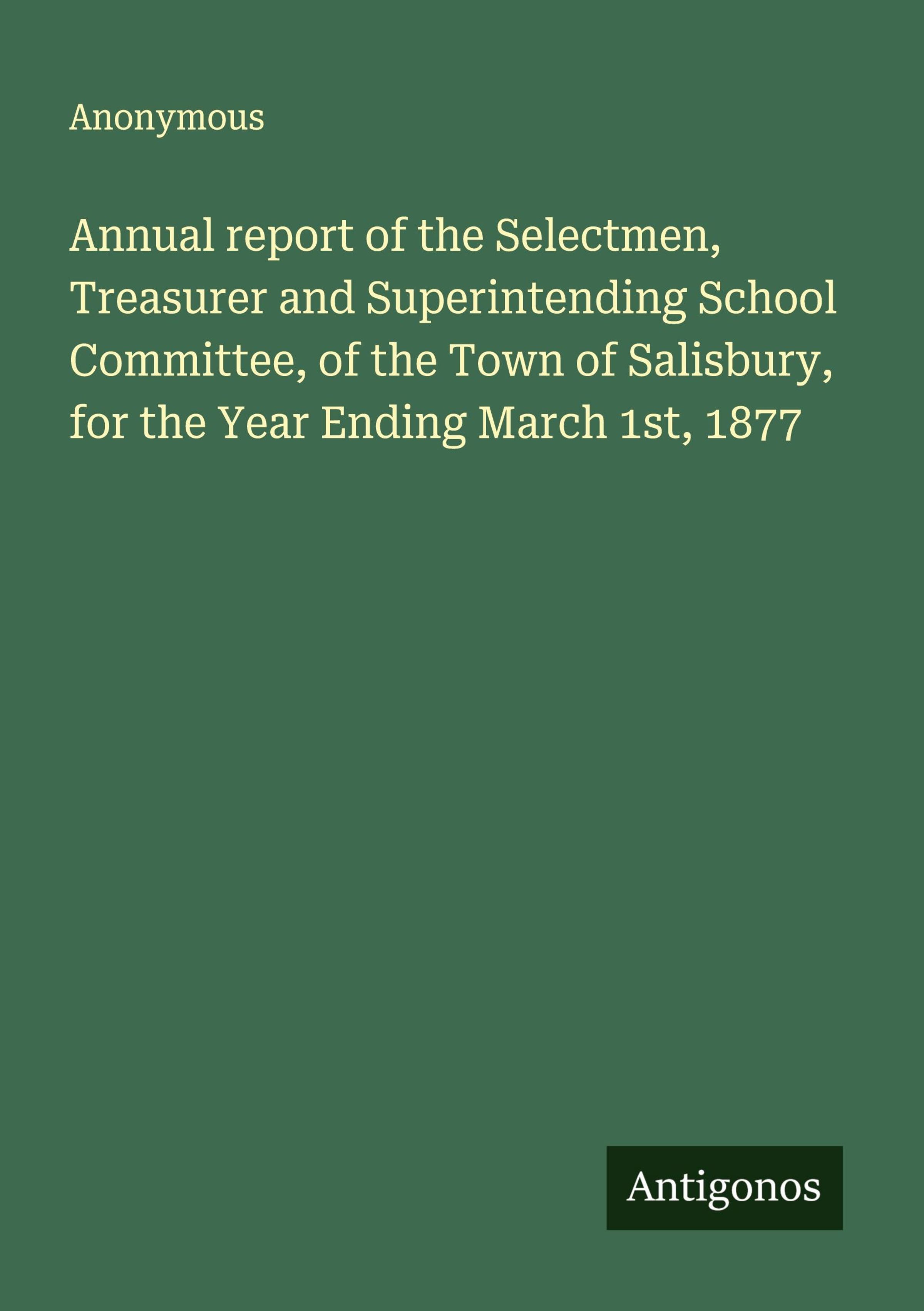 Annual report of the Selectmen, Treasurer and Superintending School Committee, of the Town of Salisbury, for the Year Ending March 1st, 1877