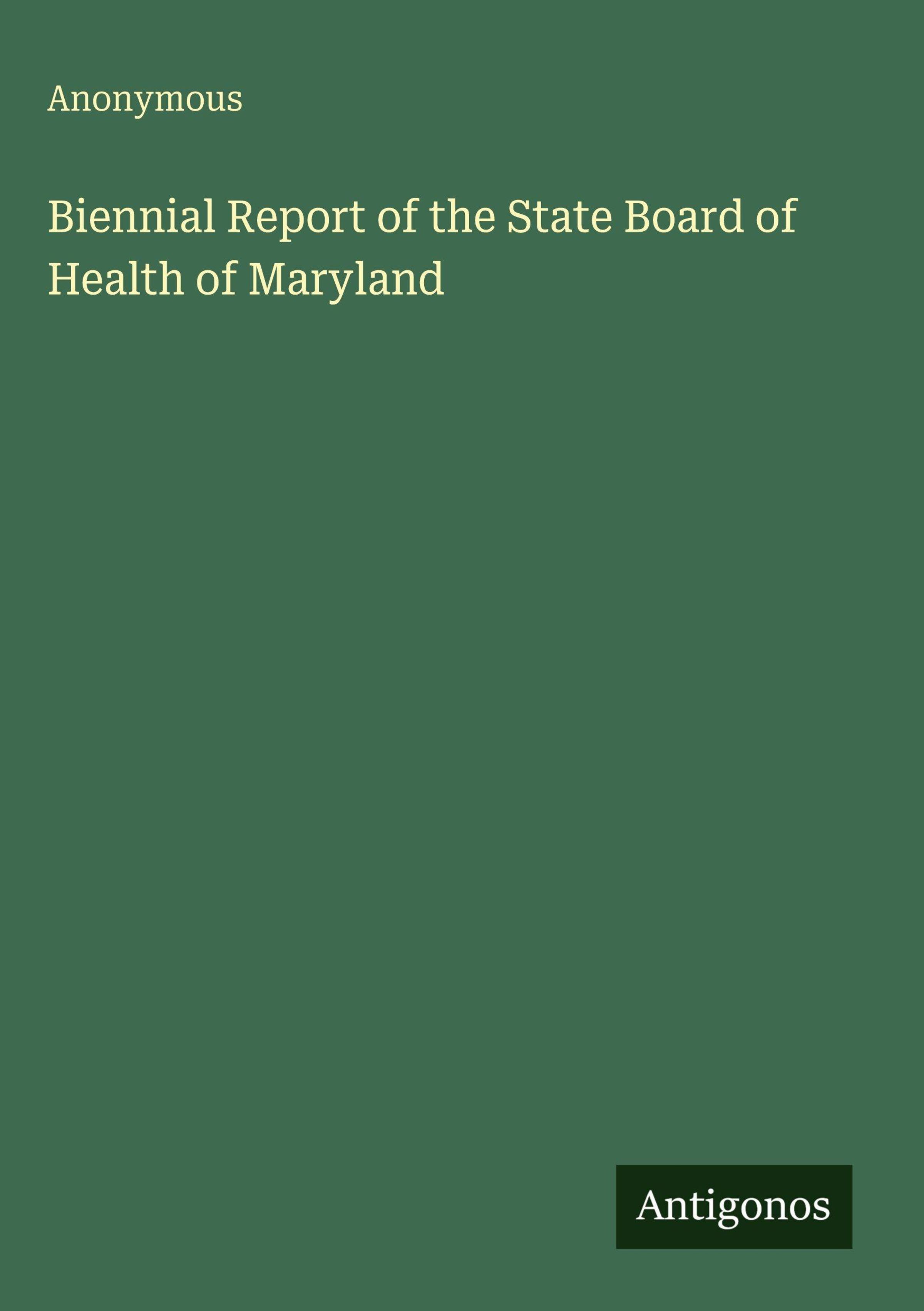 Anonymous: Biennial Report of the State Board of Health of Maryland, Gebunden